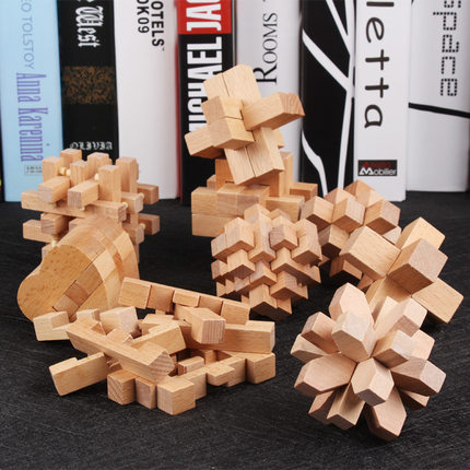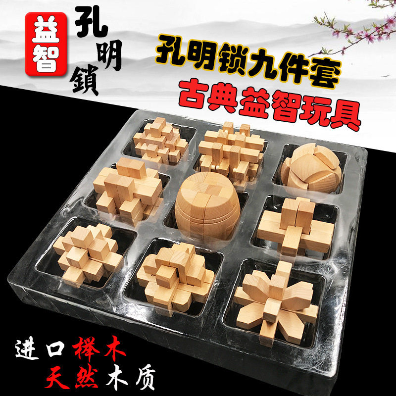 木质孔明锁鲁班锁九件套高智商榫卯结构解锁智力开发益智早教玩具