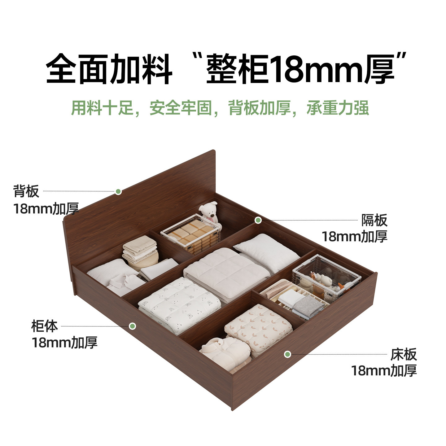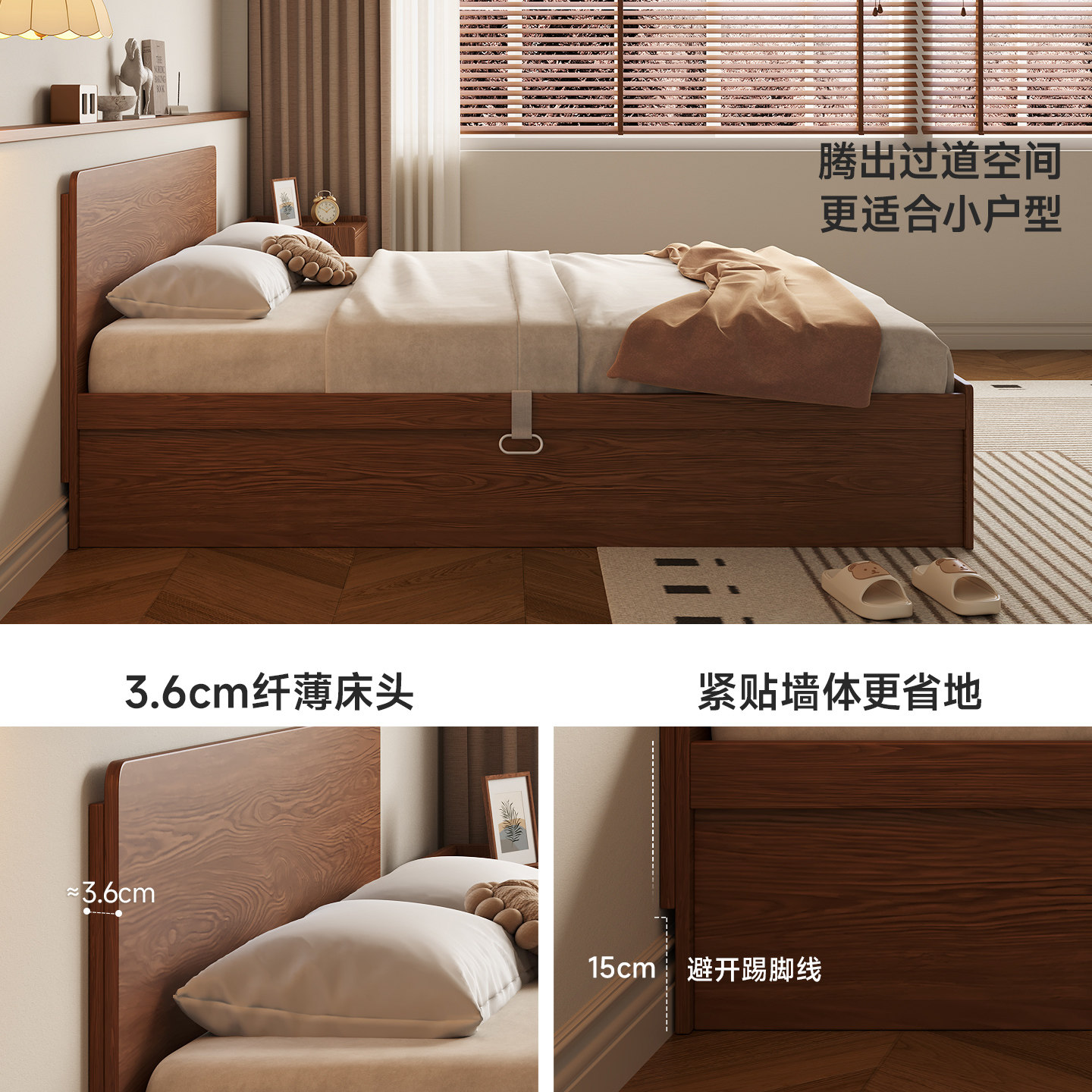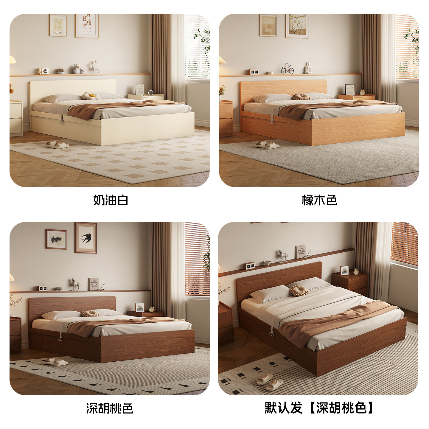 政补实木床1.8米双人储物床1.5米主卧现代简约侧开抽屉高箱气压床