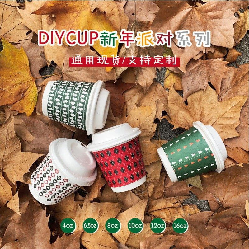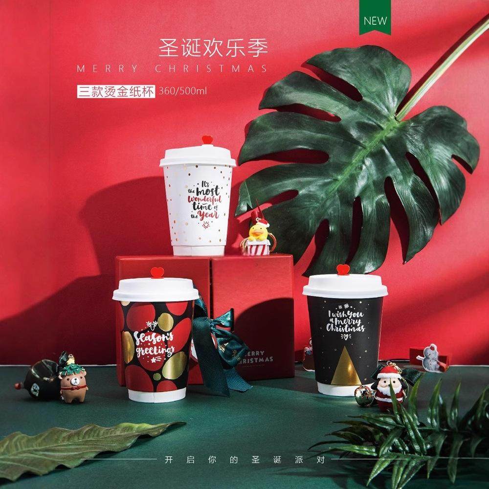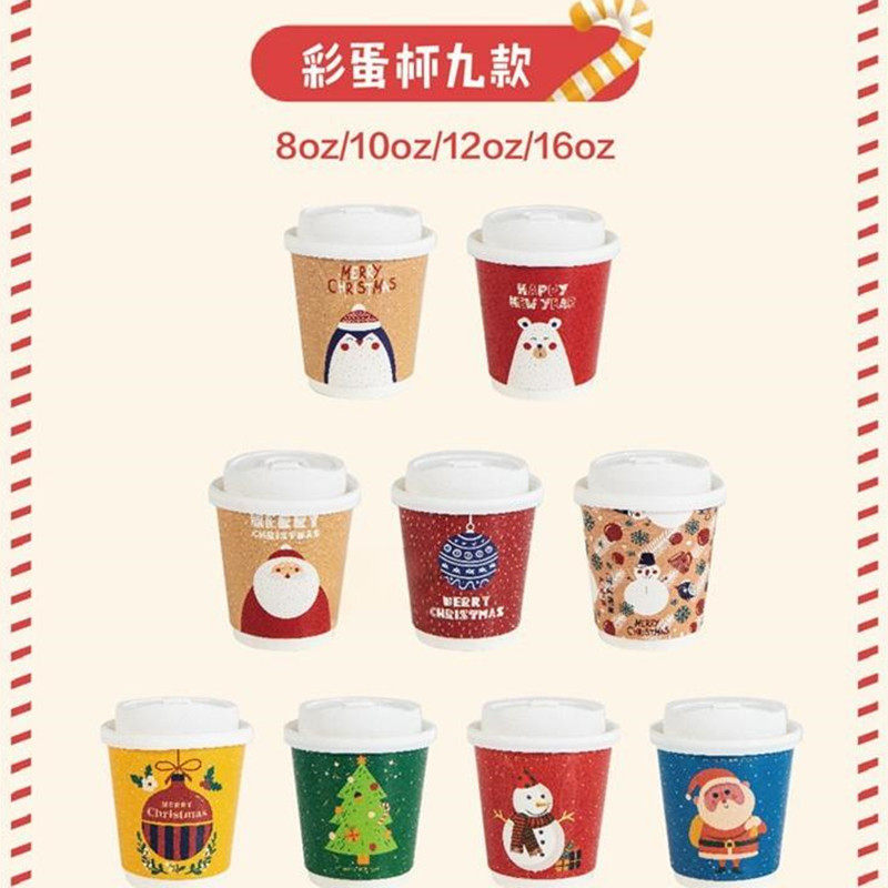 圣诞经典款纸杯雪人图案加厚一次性带盖奶茶咖啡热饮外带打包杯子