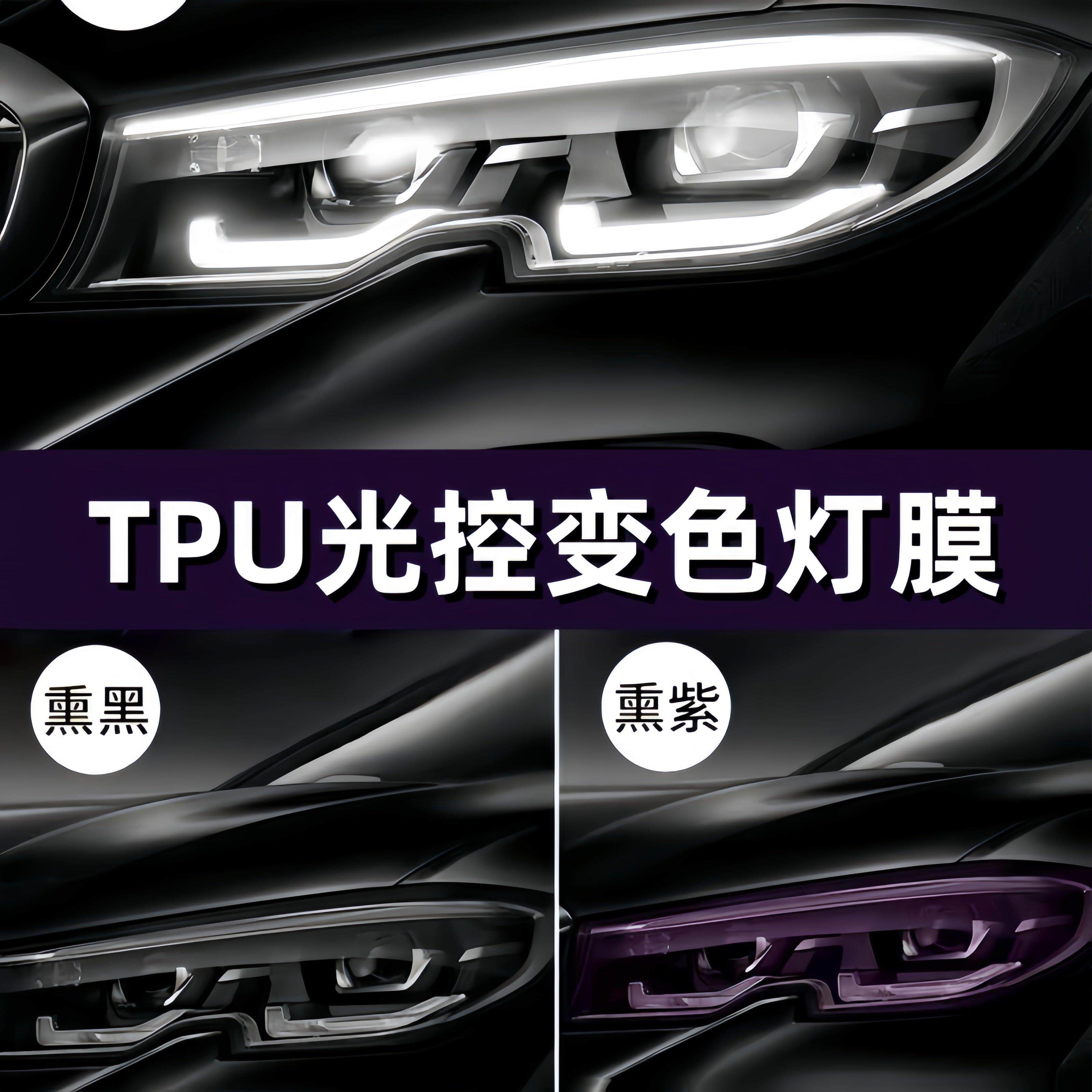 汽车大灯膜TPU熏黑光控感应变色前大灯膜车尾灯亮黑透光改色贴膜