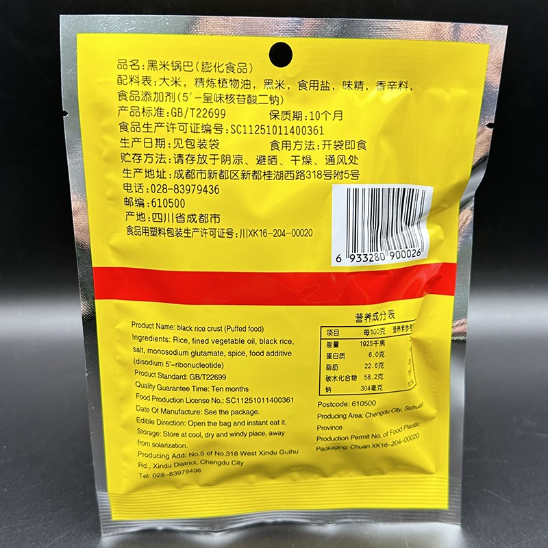 成都川洋黑米锅巴26g*20袋四川特色酥脆锅巴麻辣香葱儿时零食小吃