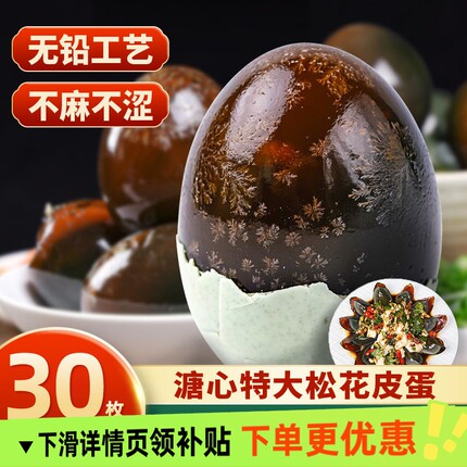 正宗溏心松花皮蛋30枚装 鄱阳湖松花皮蛋无铅工艺土鸭蛋散养盒装