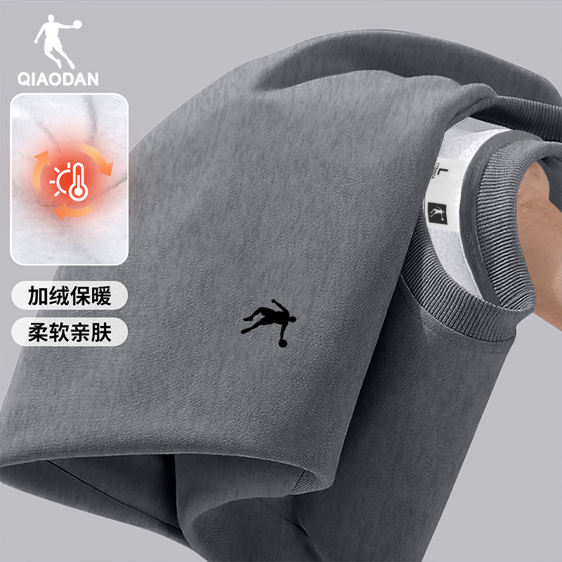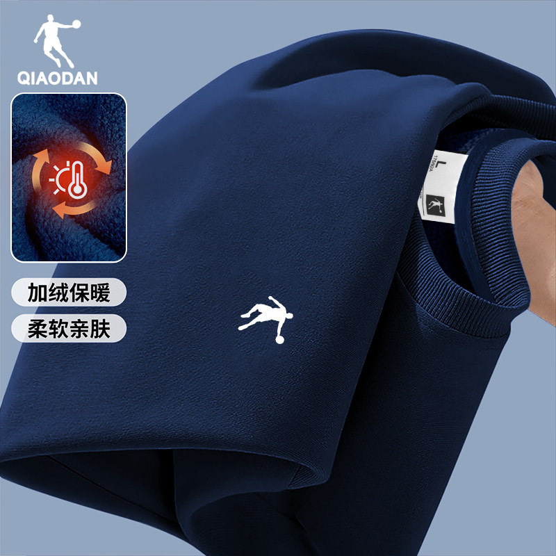 乔丹卫衣男款冬季新款加绒加厚圆领内搭长袖t恤打底衫宽松运动服