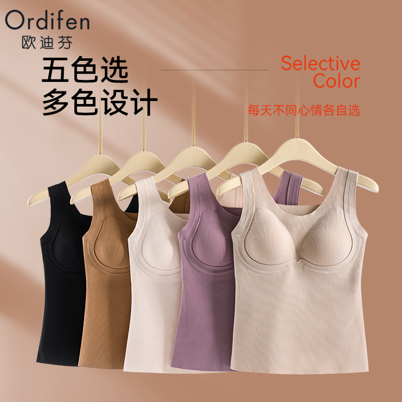 Ordifen/欧迪芬保暖背心女带胸垫加绒加厚秋冬季无痕大码免穿文胸