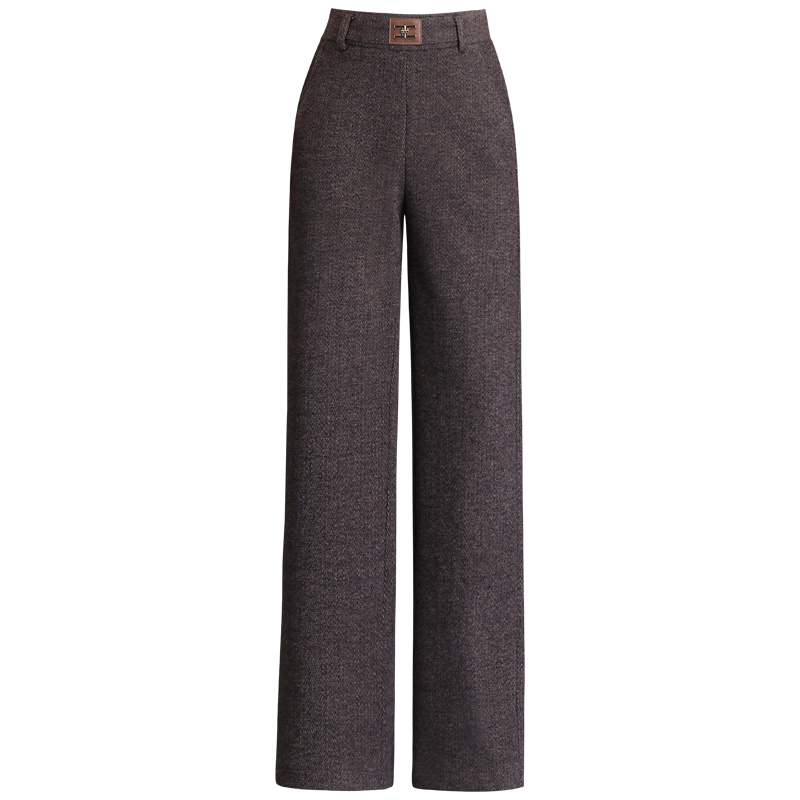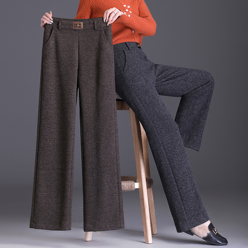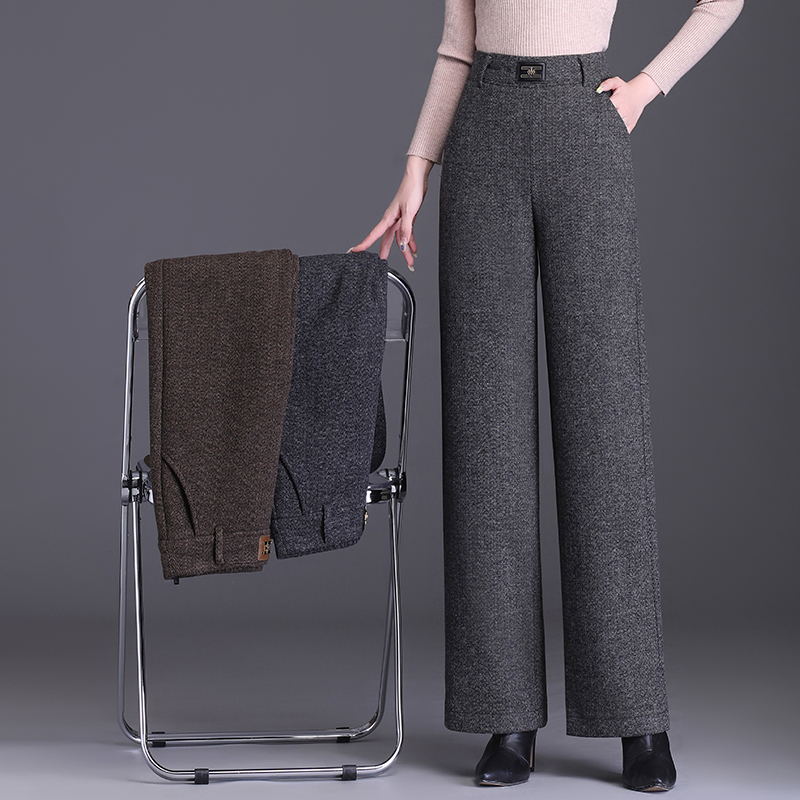 人字纹高腰宽松毛呢阔腿裤秋冬新款显瘦百搭中年妈妈垂感直筒裤女