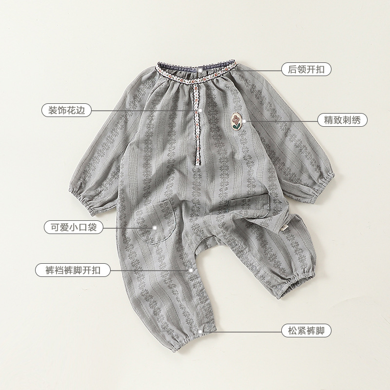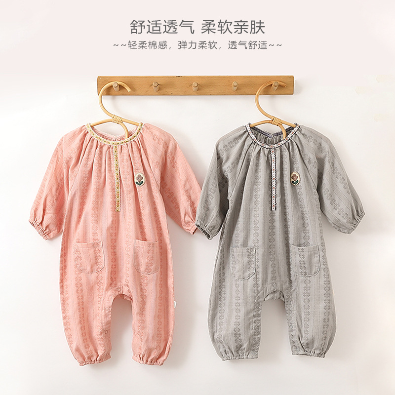 婴儿全棉连体衣24秋款女宝宝甜美小公主周岁爬爬服春秋外出