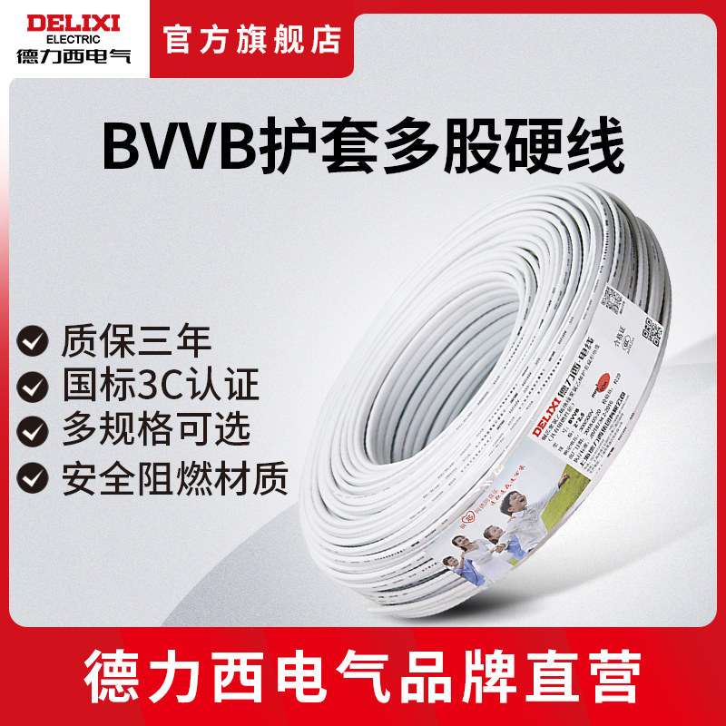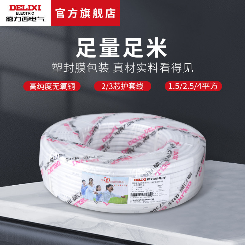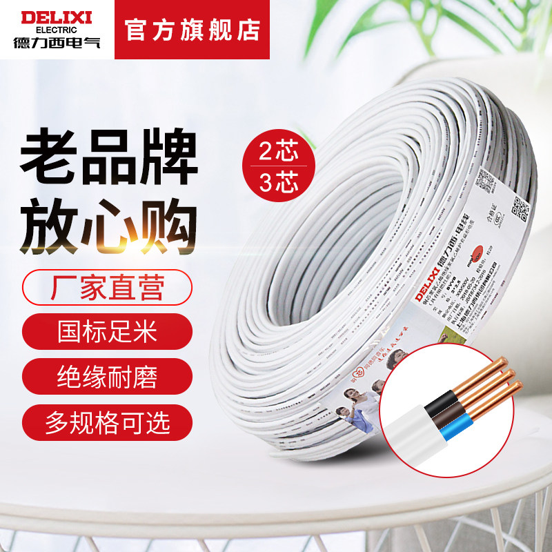 德力西电气家装电线电缆 1.5/2.5/4平方2/3芯护套线50米BVVB电线