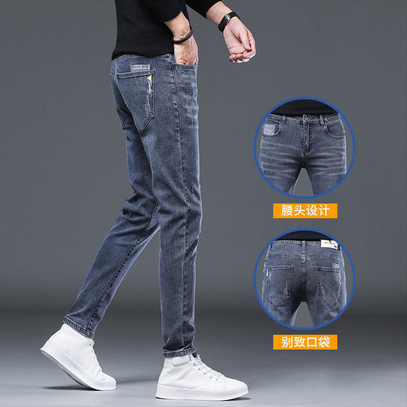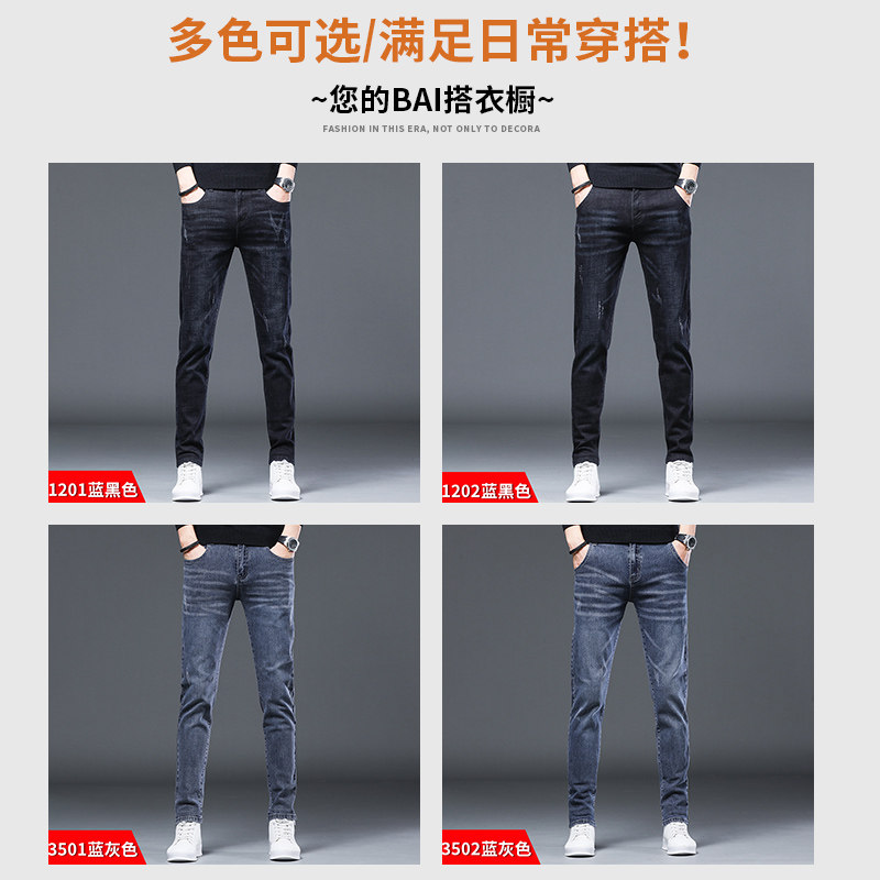 秋冬牛仔裤男弹力修身小脚长裤子