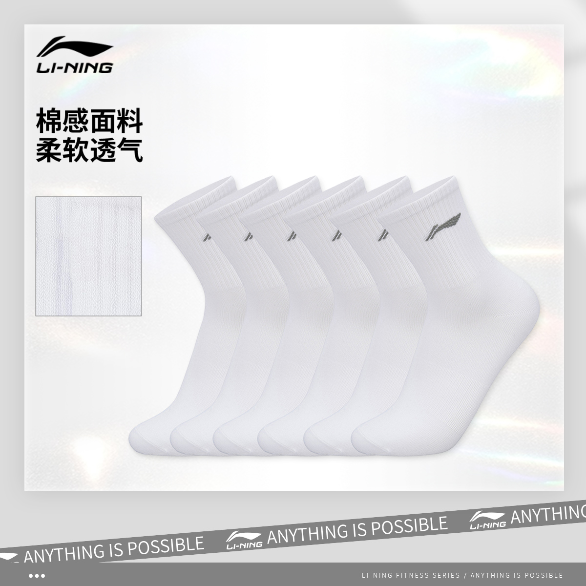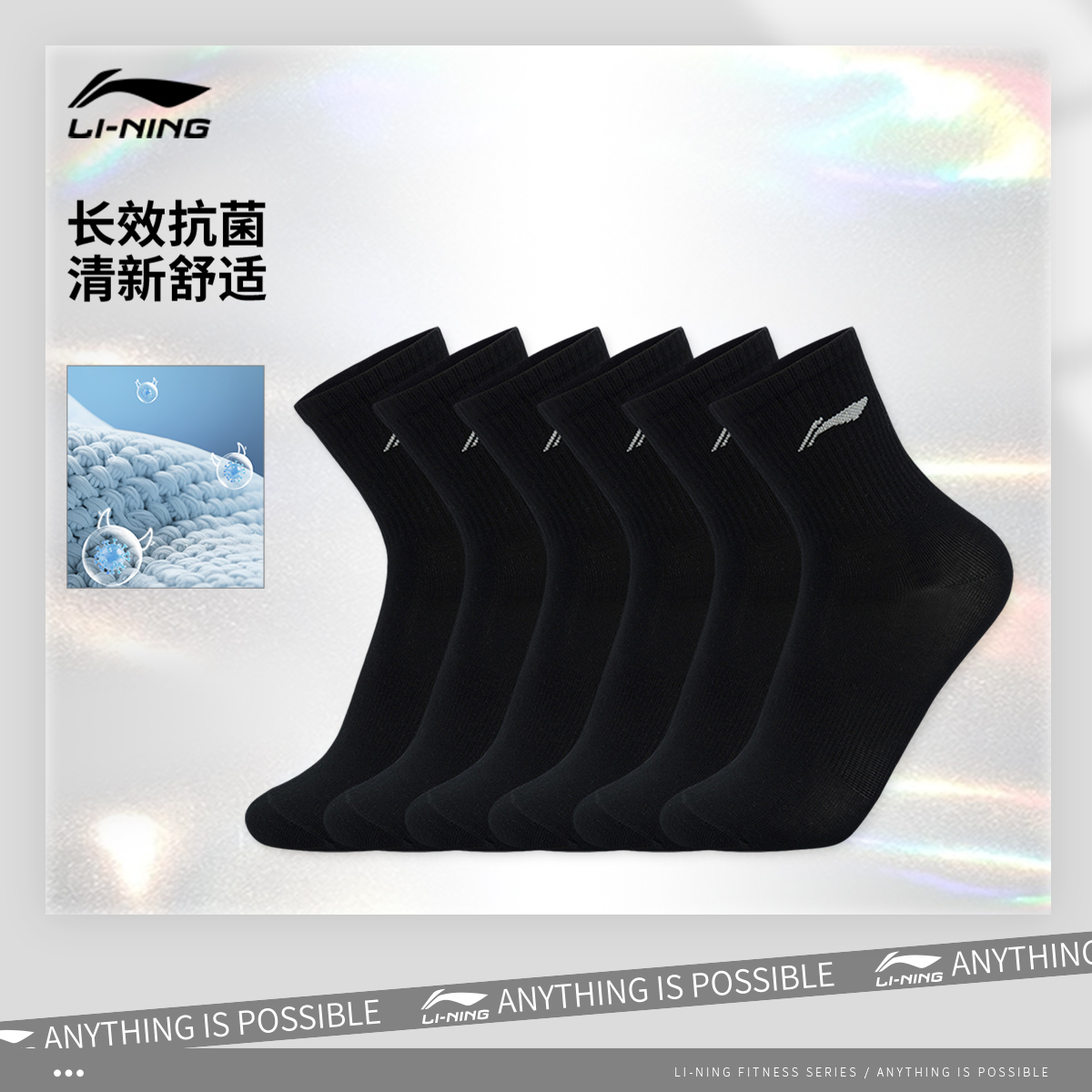 李宁新款中筒袜男女健身长袜柔软六双装运动袜特殊产品不予退换货