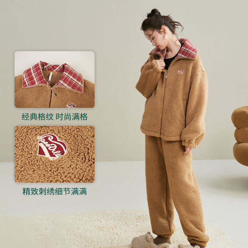 安之伴【巨保暖】北羔绒睡衣女冬季冬款加厚珊瑚绒休闲拉链家居服