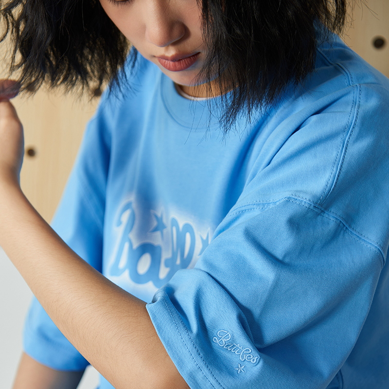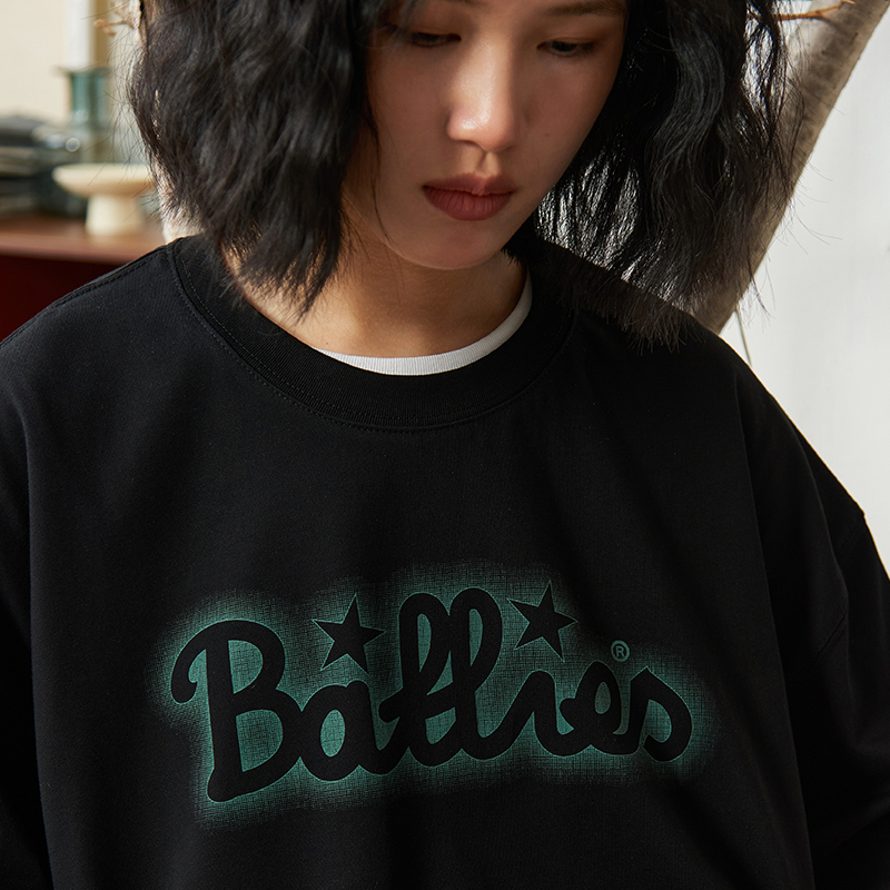 Mexishion短袖T恤男宽松休闲重磅纯棉雾化logo美式半袖圆领上衣