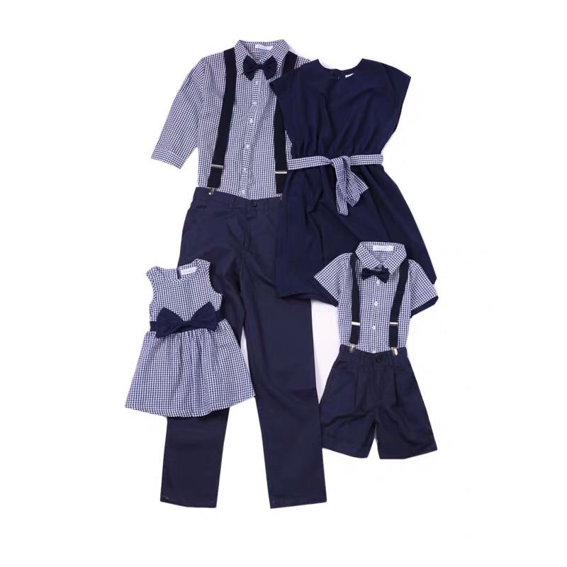 亲子装礼服夏装格子衬衫母女装连衣裙宝宝婴儿洋气时尚领结背带裤
