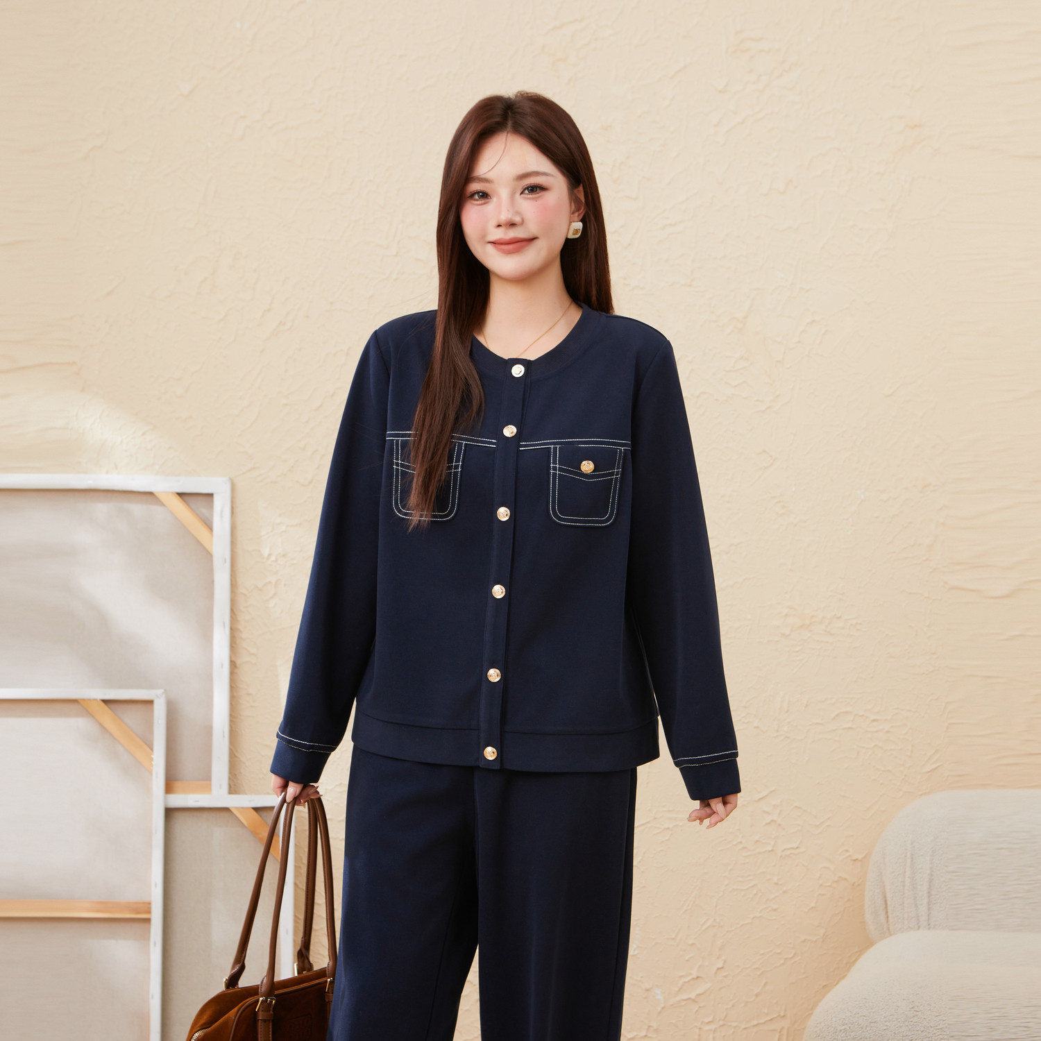采多宝大码女装胖mm2025冬季新款轻熟风时髦针织呢外套长裤套装