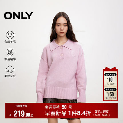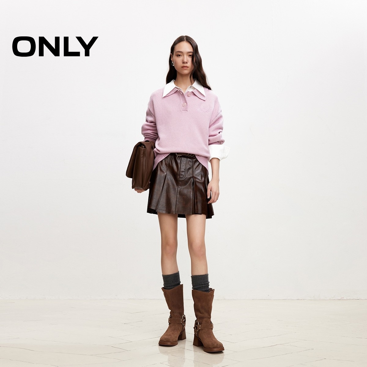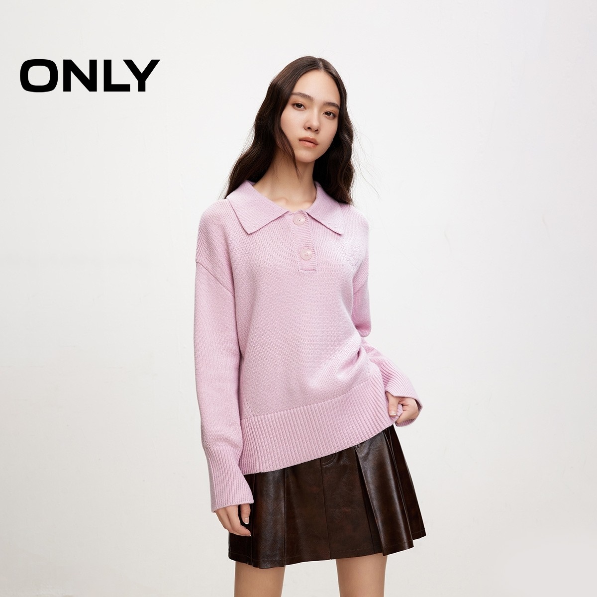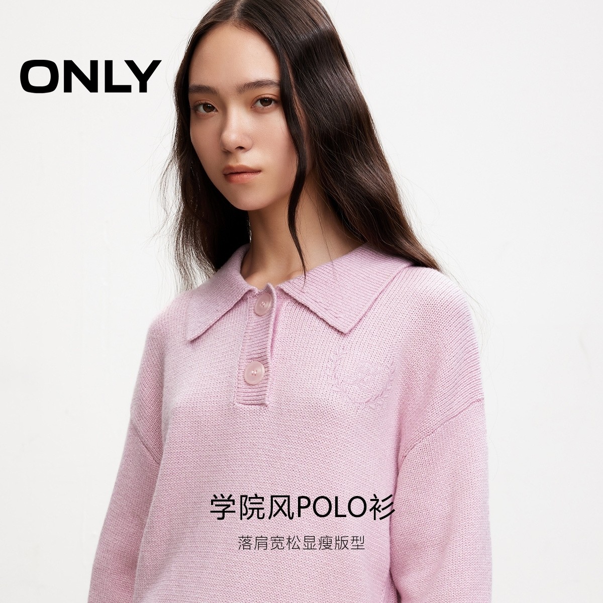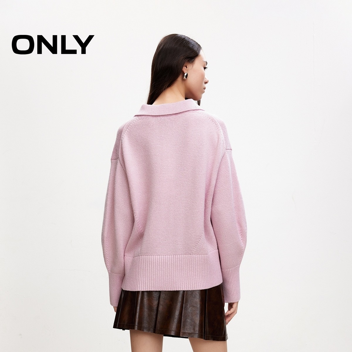 ONLY冬季学院风宽松显瘦POLO领毛衣针织衫女|124413006