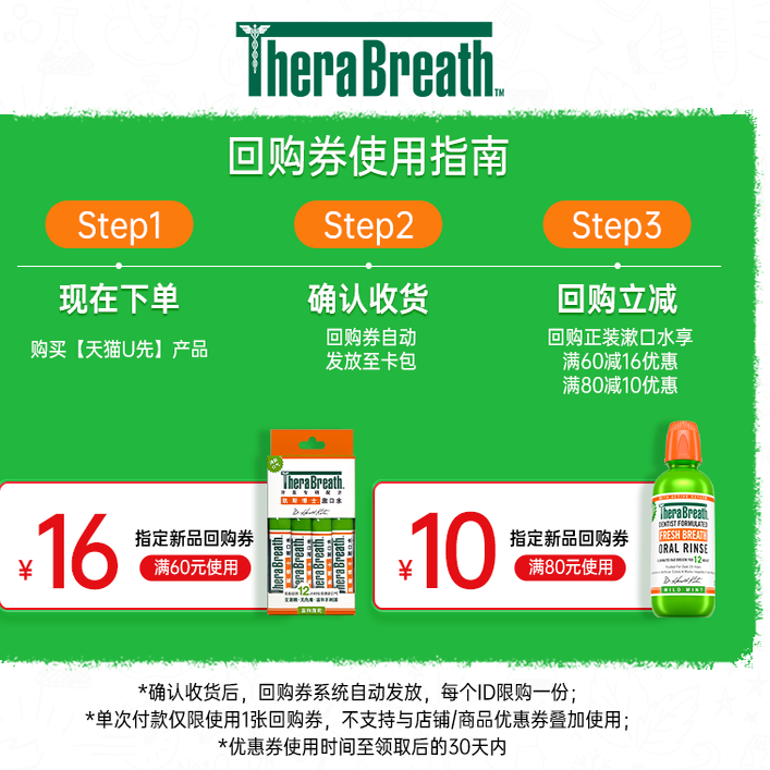 【U先试用】TheraBreath凯斯博士漱口水6条装