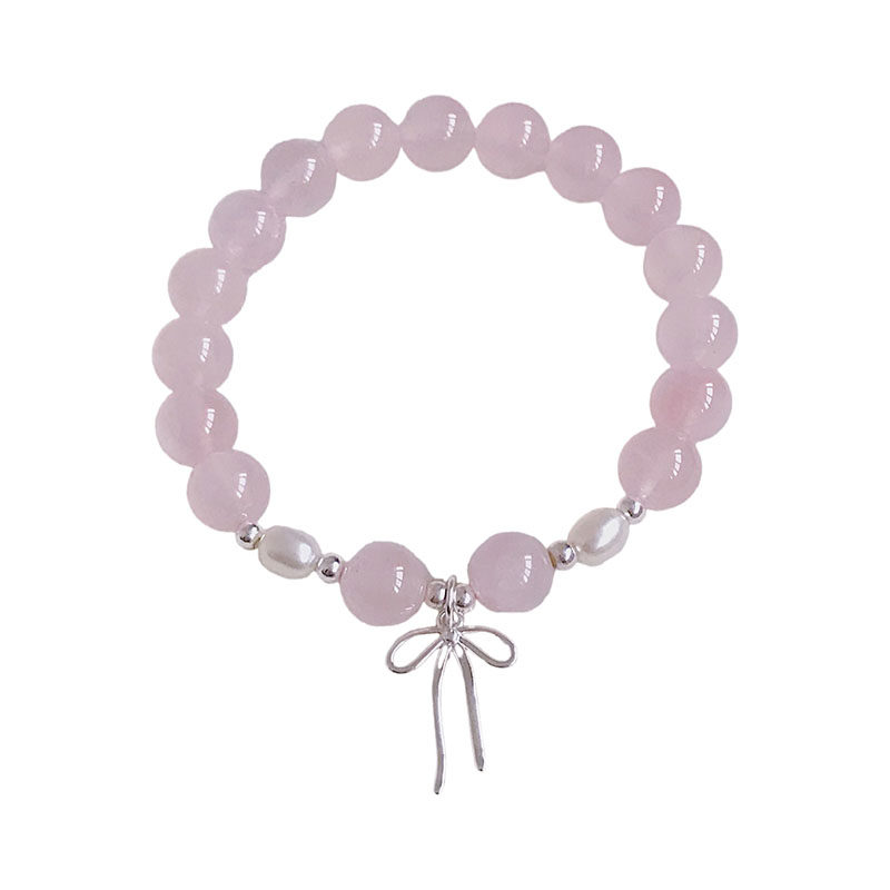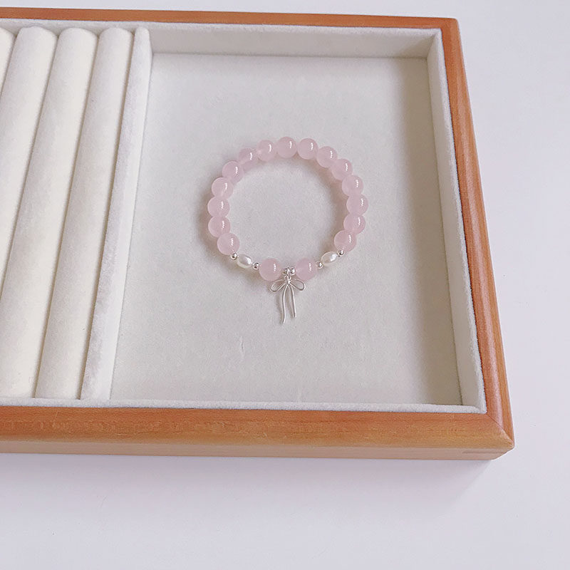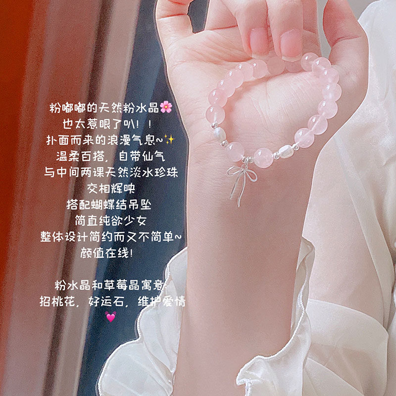 「甜心蜜桃」天然粉水晶蝴蝶结纯银手链粉色原创少女心甜妹手串女