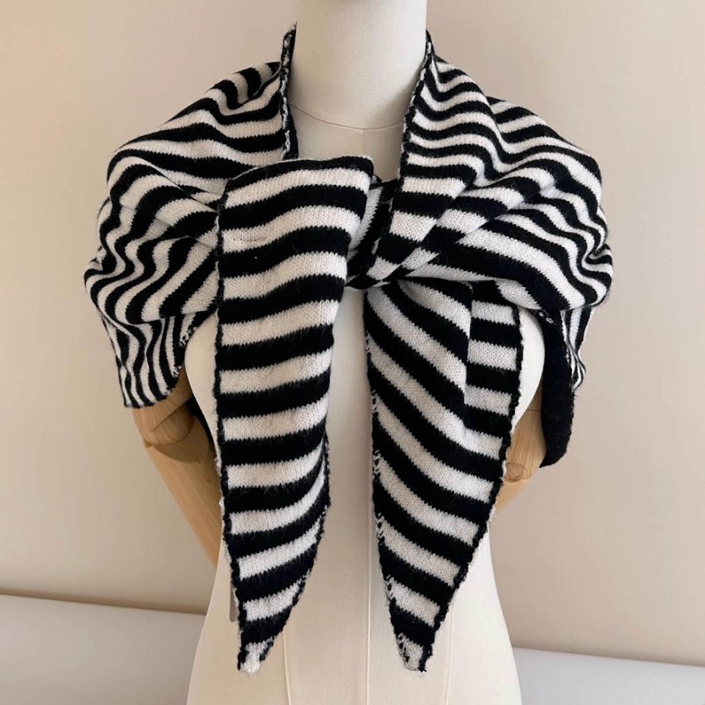 2025新款韩系条纹针织三角围巾女秋冬保暖护颈披肩百搭氛围感围脖
