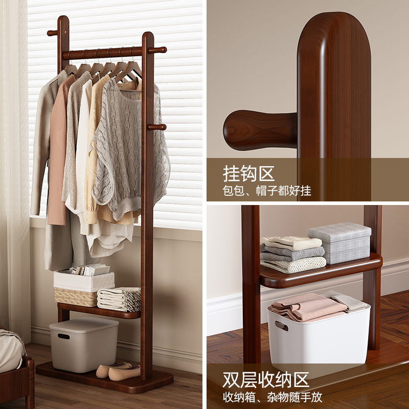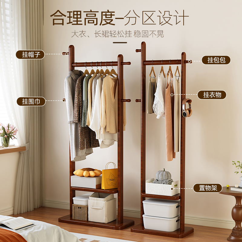 实木落地衣帽架卧室挂衣架家用不占空间置物架房间衣服挂架入户门