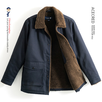 爸爸冬装外套加绒加厚保暖中老年人宽松夹克老人男装爷爷秋冬上衣