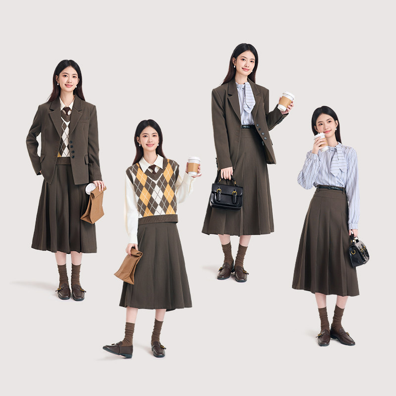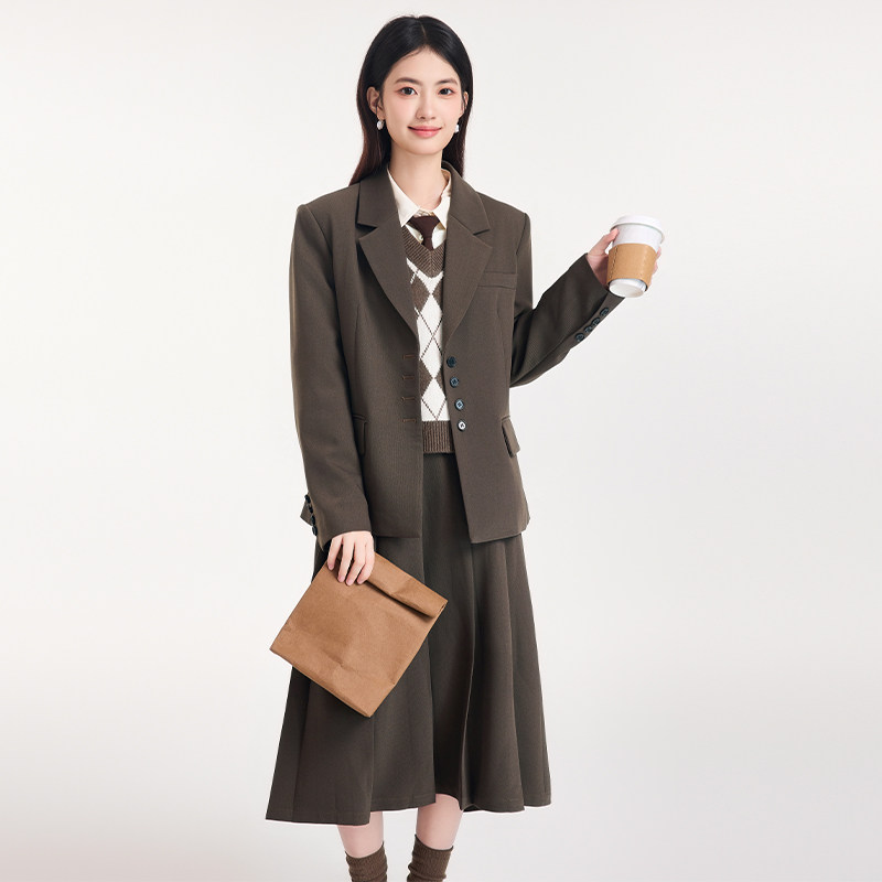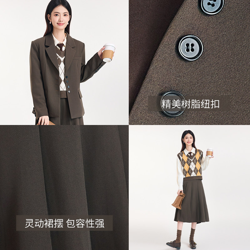 图曼朵棕色西装外套女春季学院风高级感通勤西服套装面试职场正装