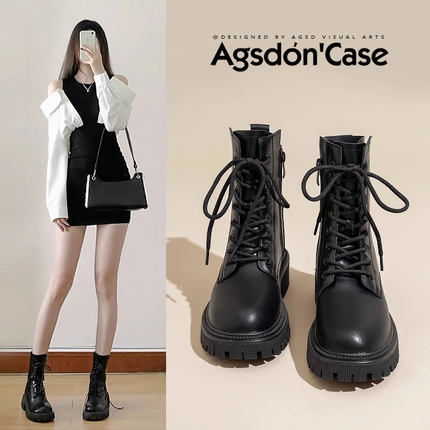 奥古狮登春季冬加绒黑色马丁靴