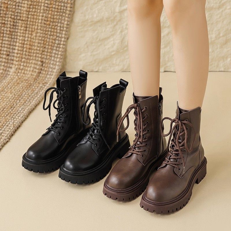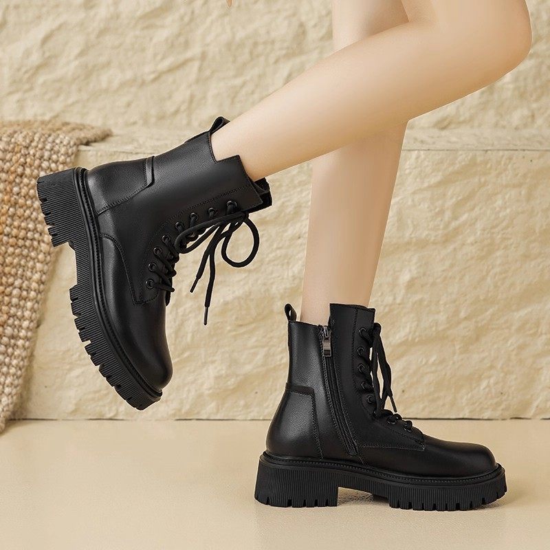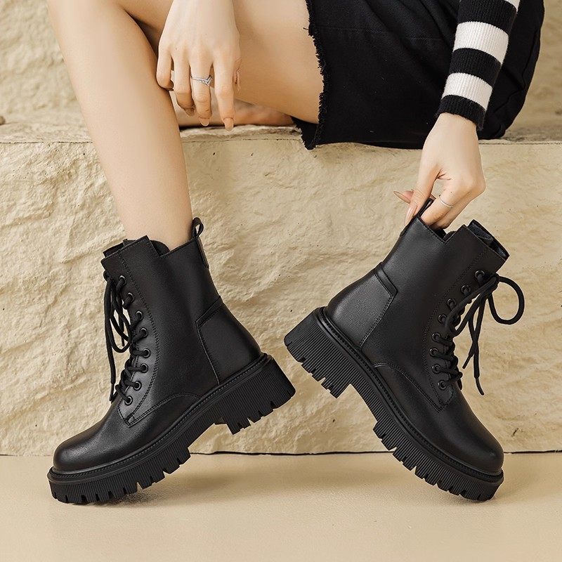 奥古狮登厚底马丁靴女2026新款春季中筒英伦风冬加绒黑色雪地靴爆