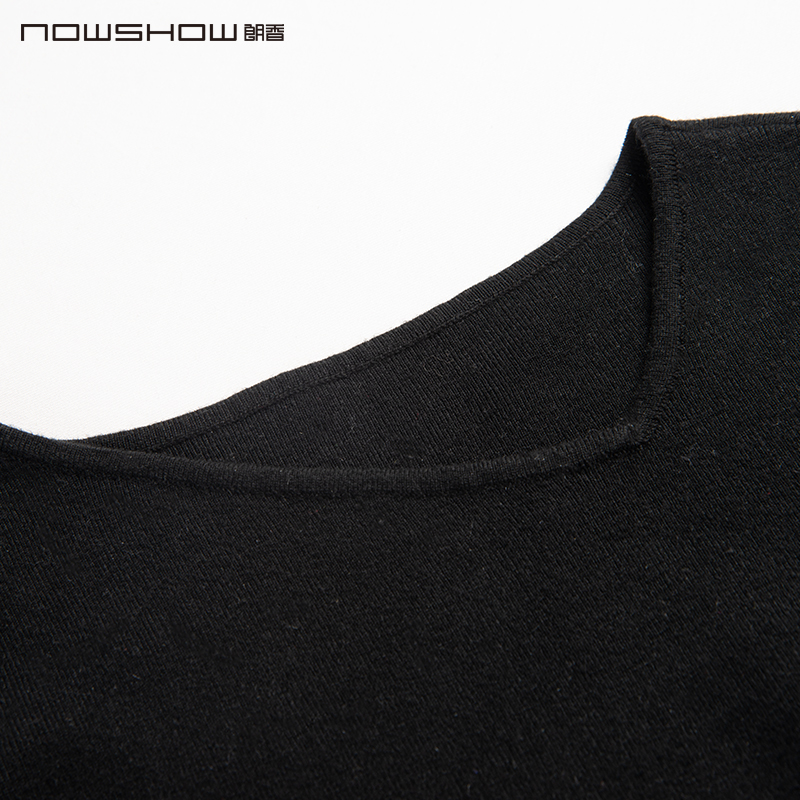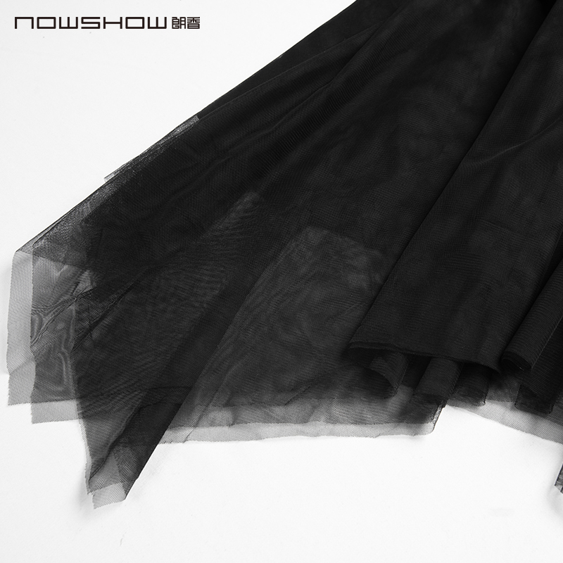 无腰带NOWSHOW朗香黑色针织拼网纱连衣裙203048