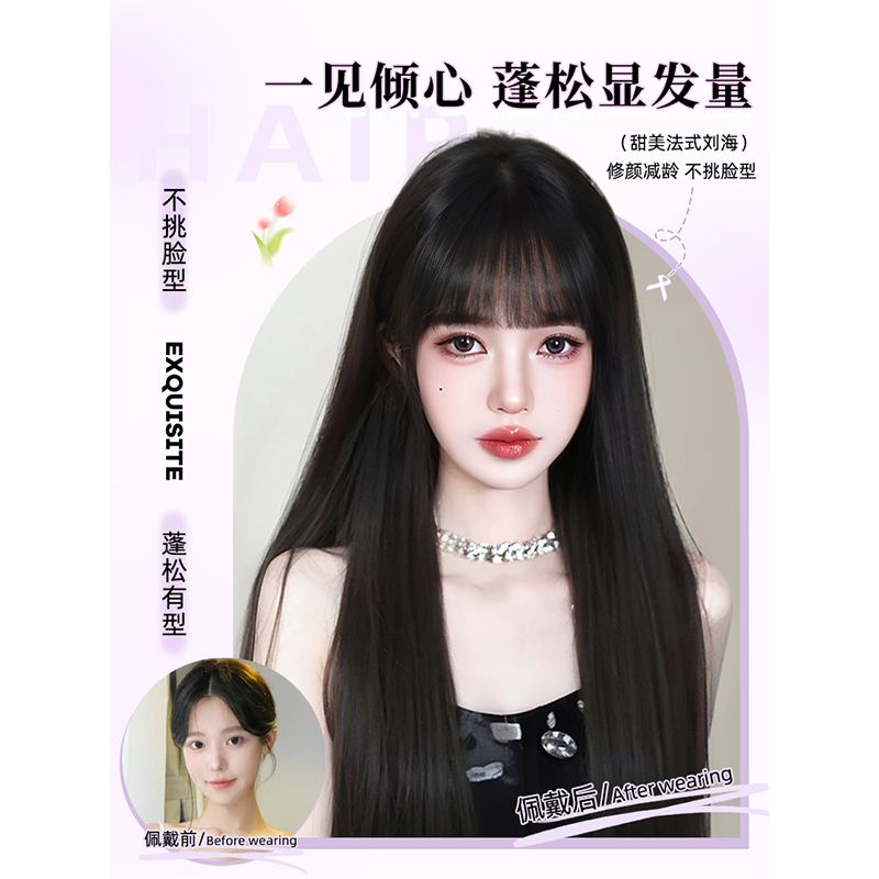 天空树假发女中长发自然全头套仿真发富江风黑长直整顶刘海假发套