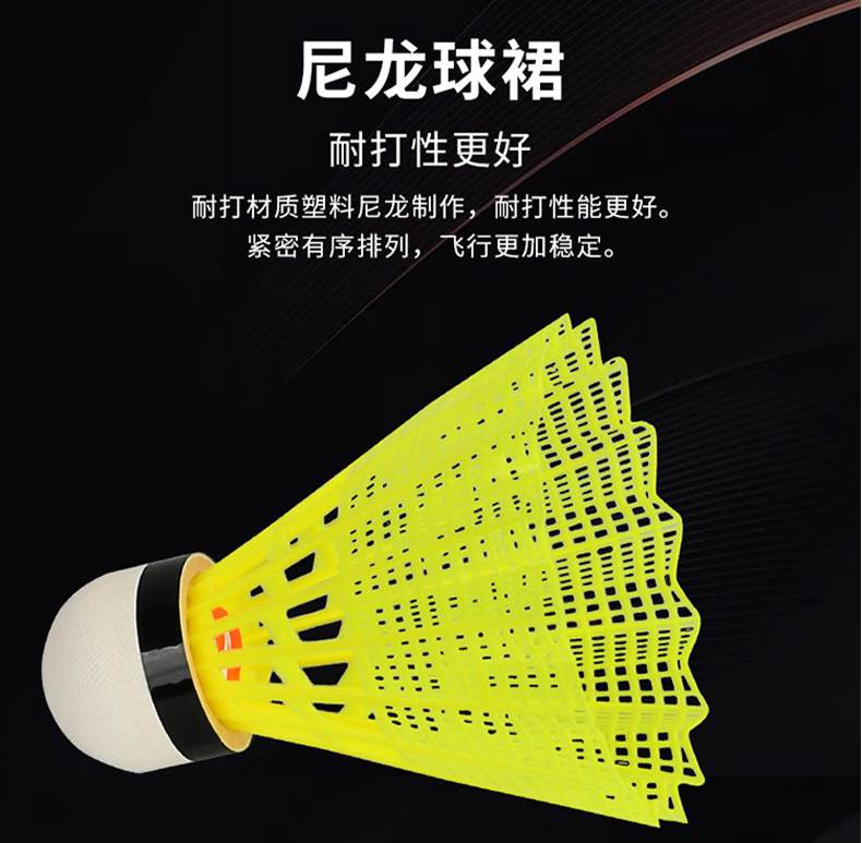 凯胜羽毛球塑料尼龙球KN1耐打室内耐用训练室外防风6只装软木球头