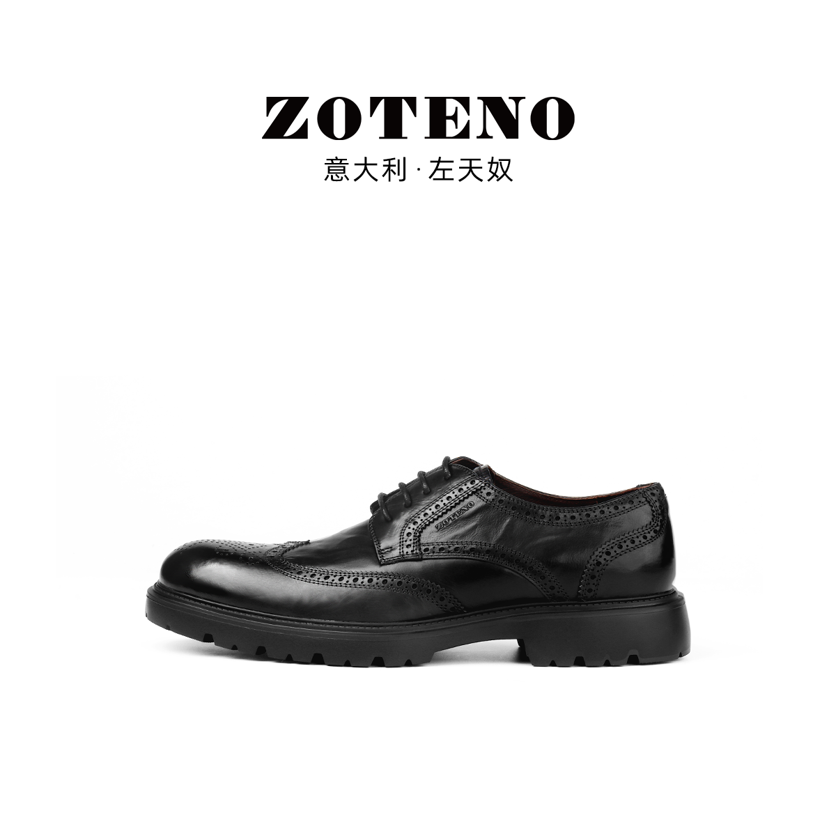 ZOTENO/左天奴男鞋正装商务德比鞋男士厚底英伦布洛克皮鞋W289