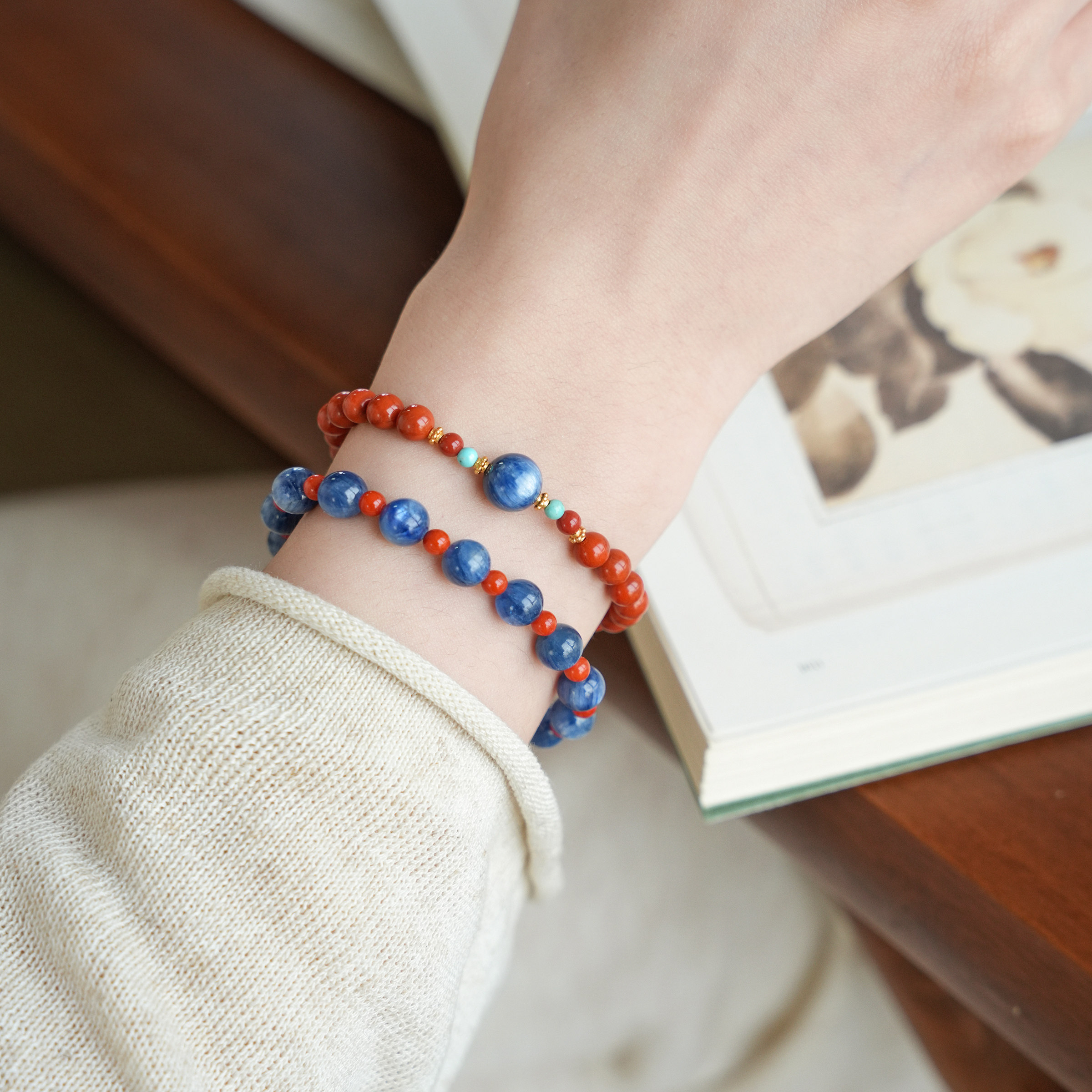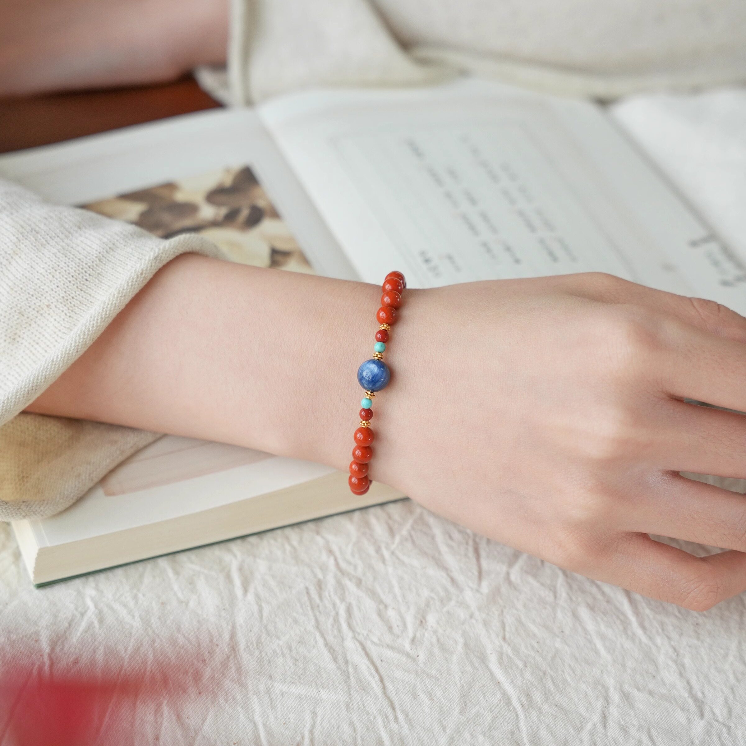 QIANTAO「云上」原创天然南红手串蓝晶石绿松石多宝手链礼物