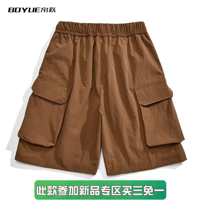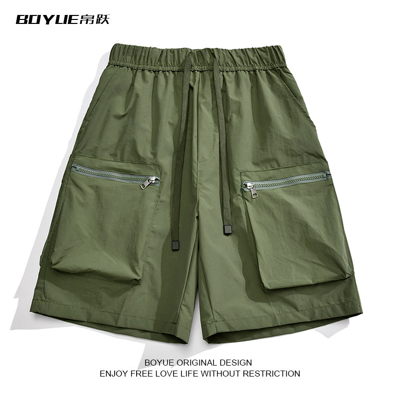 BOYUE帛跃拉链多口袋清凉冰丝短裤男潮少年感户外运动休闲五分裤