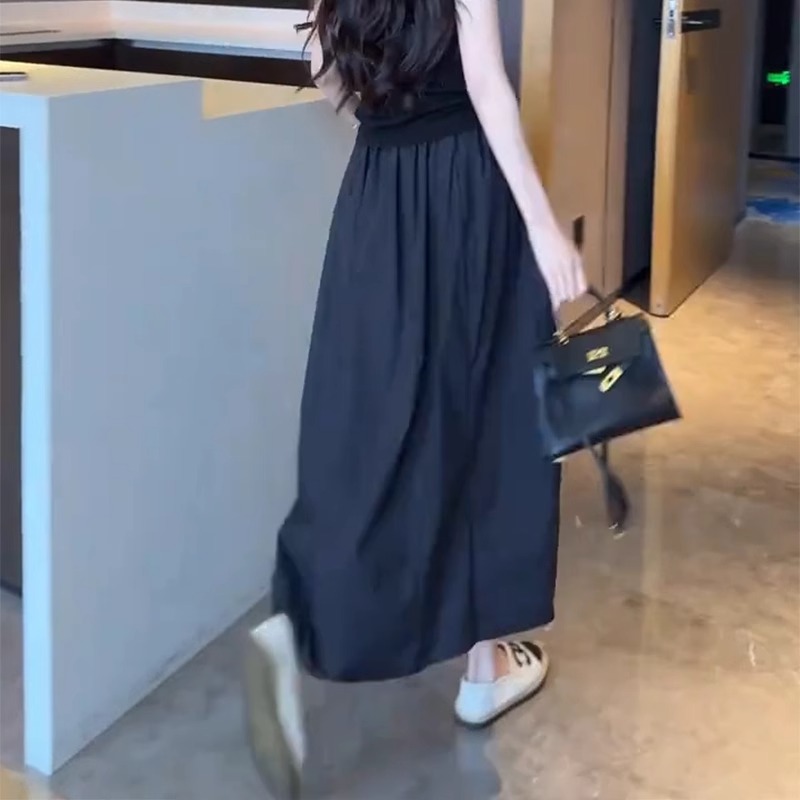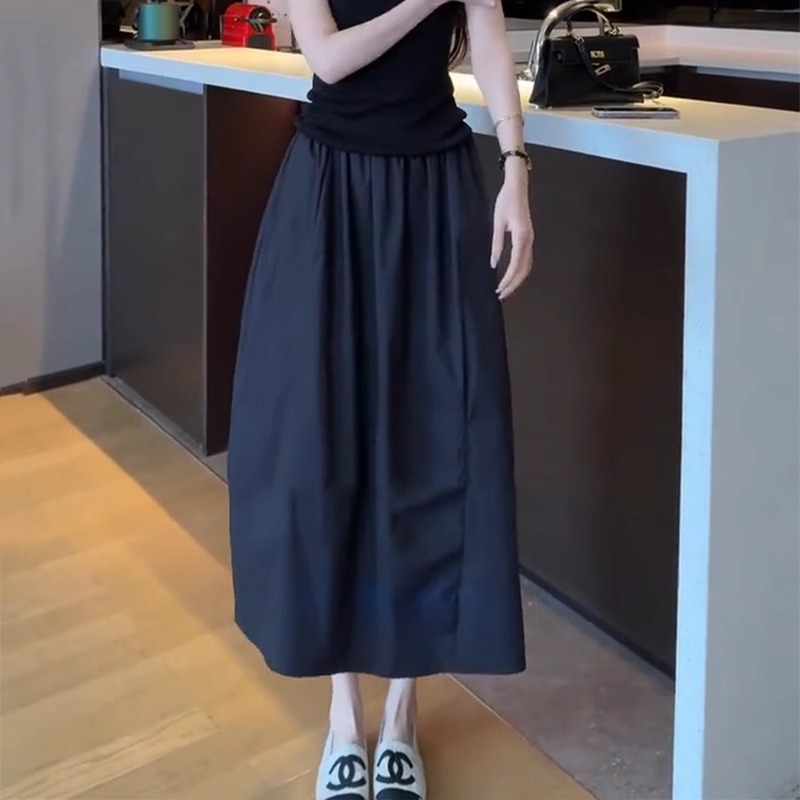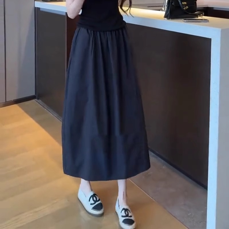 韩版洋气减龄黑色中长款A字裙2025夏季新款复古显瘦百搭半身裙