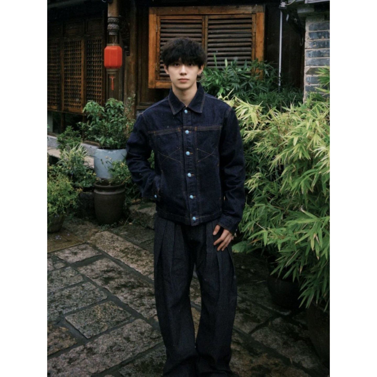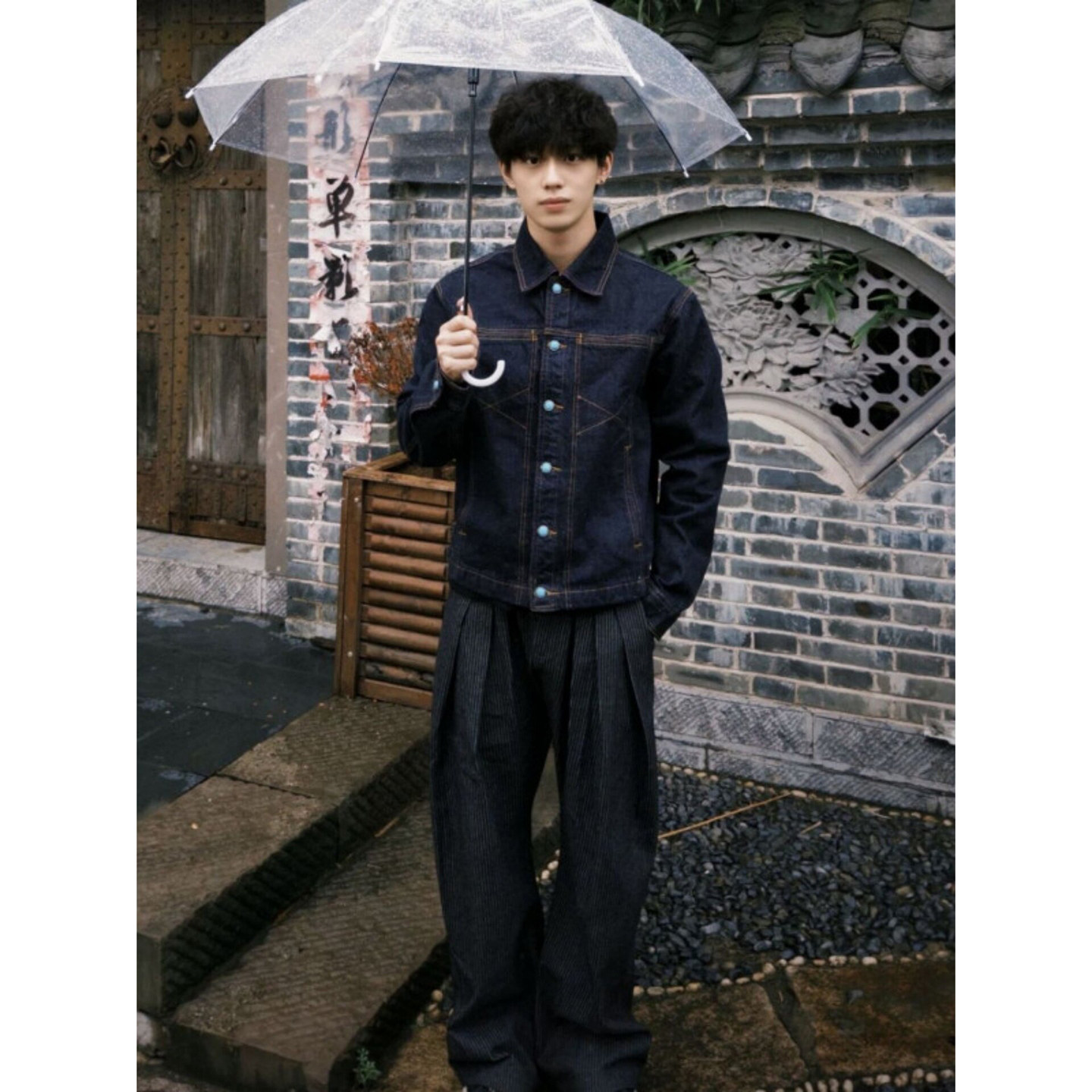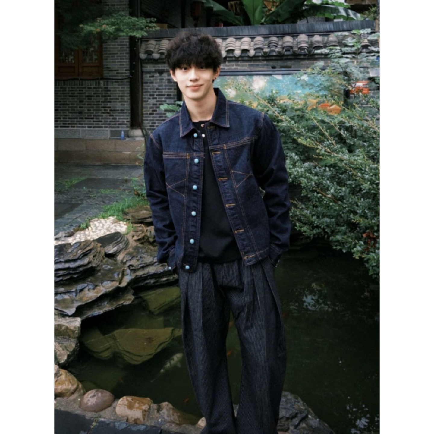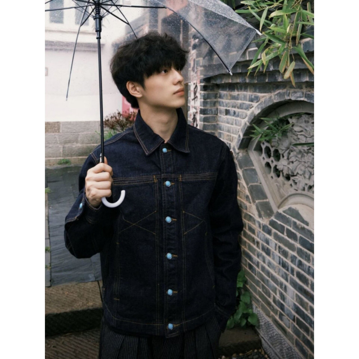丹宁色原牛绿松石牛仔外套男款春季痞帅工装夹克cleanfit翻领上衣