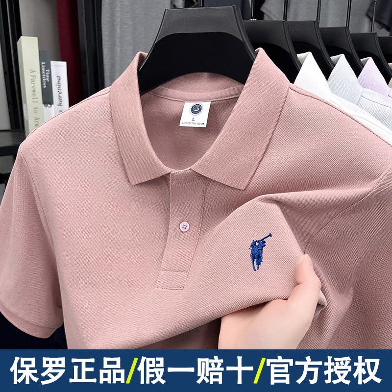 保罗正品100%棉POLO衫短袖休闲男士新款纯色小马标刺绣翻领T恤男
