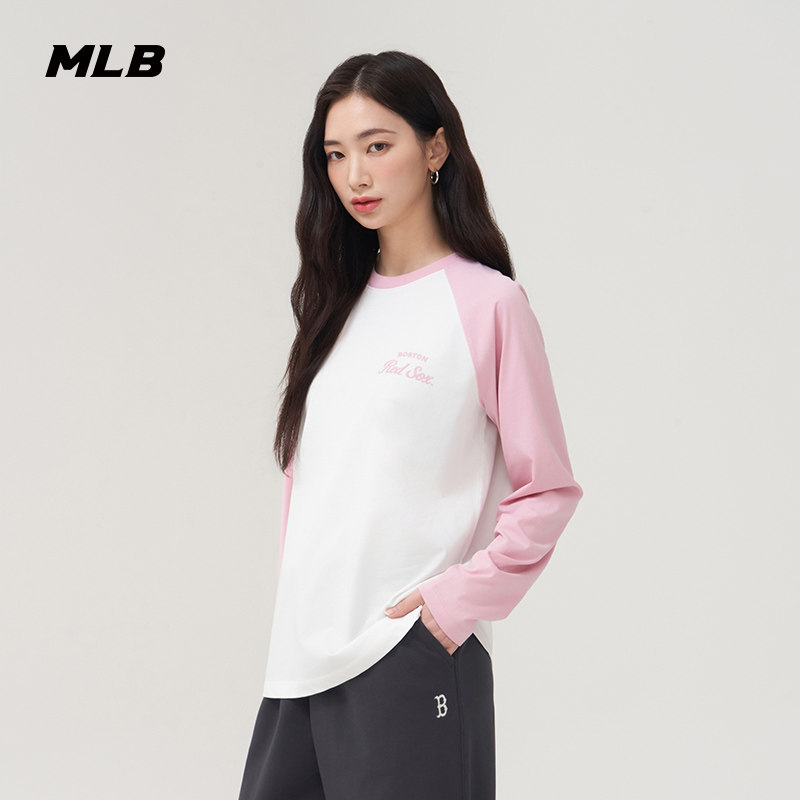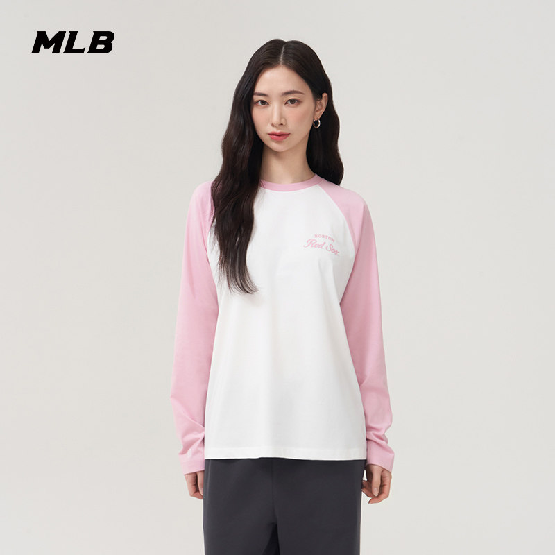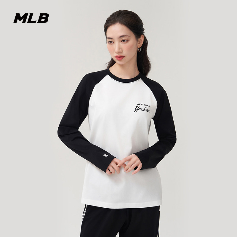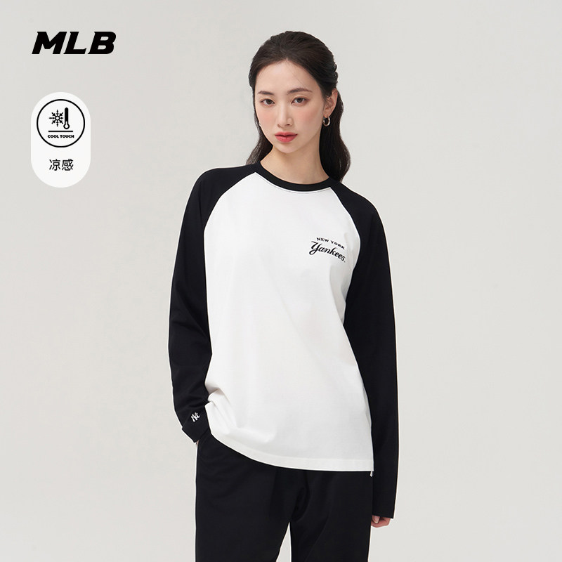 MLB官方 女款学院风撞色拼接圆领凉感百搭长袖T恤25春夏新款TSV01