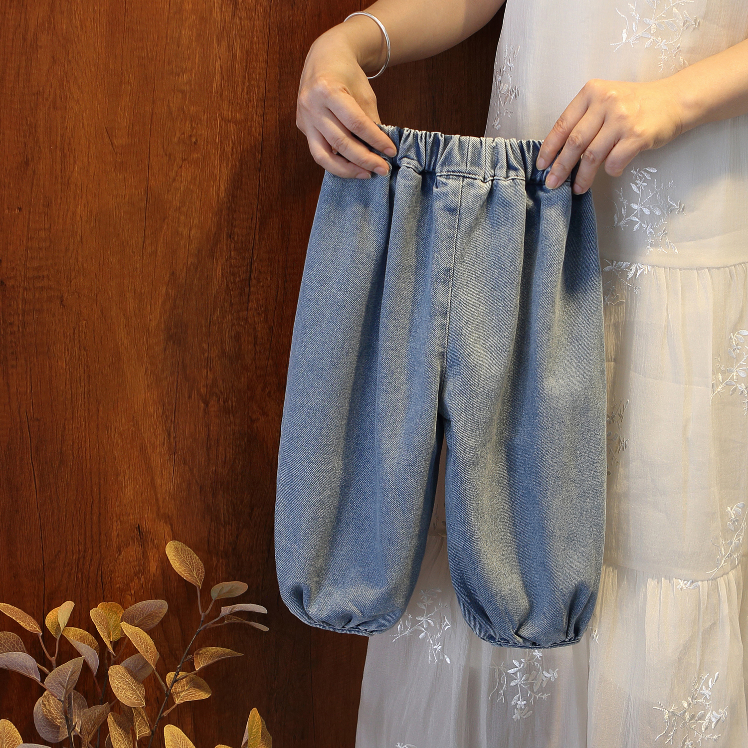 女宝宝软牛仔裤2025秋季新款女童宽松哈伦裤儿童时髦灯笼裤长裤子