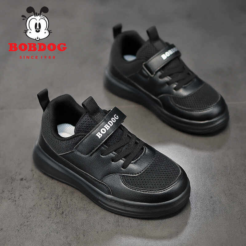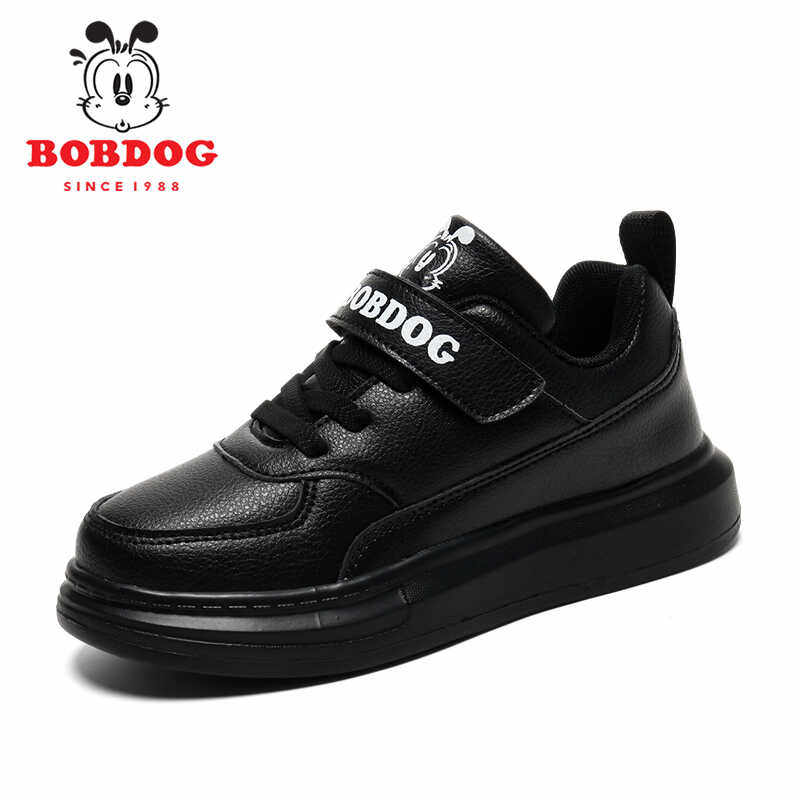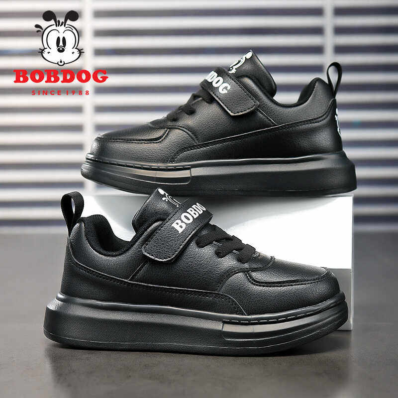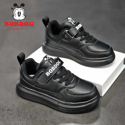 巴布豆春秋季男童板鞋皮面防水韩版百搭纯黑色小男孩皮鞋演出表演