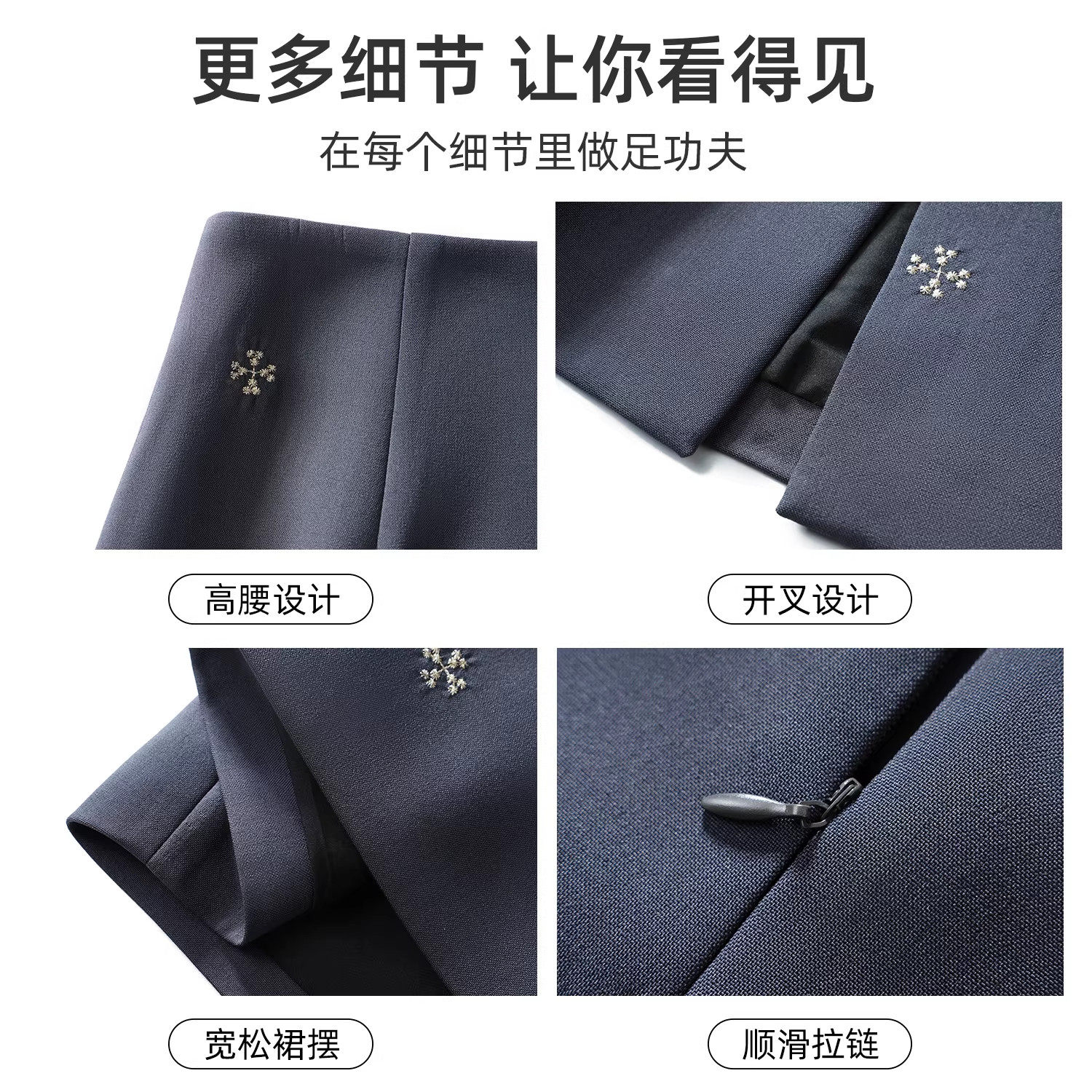 灰色刺绣A字开叉通勤半身裙