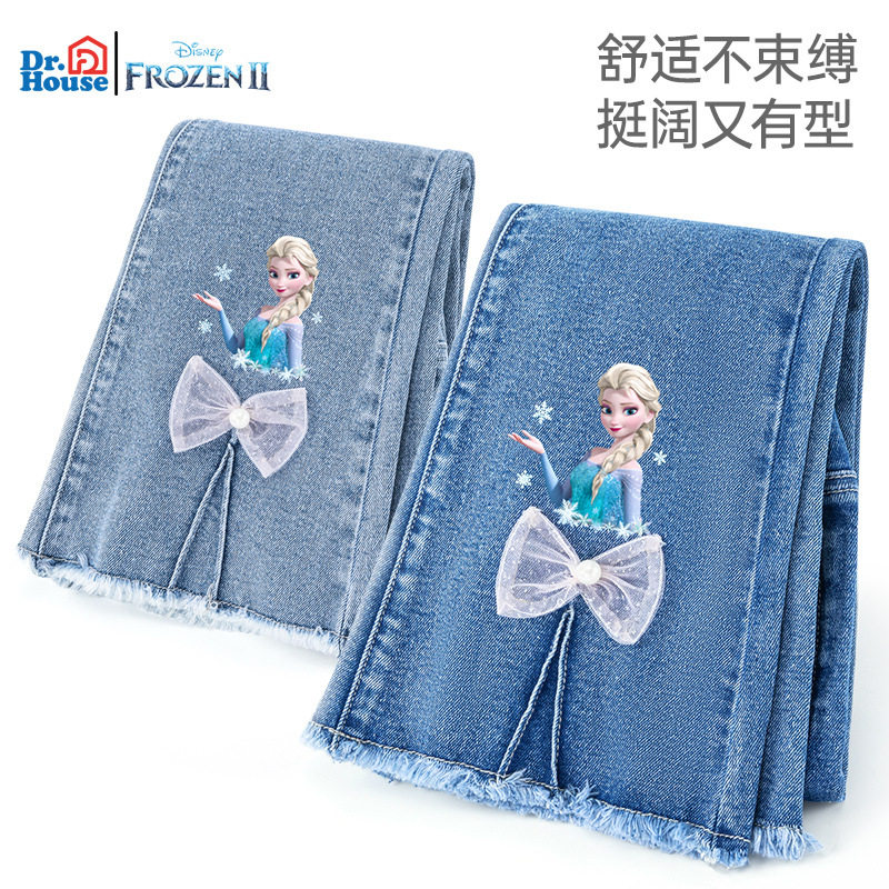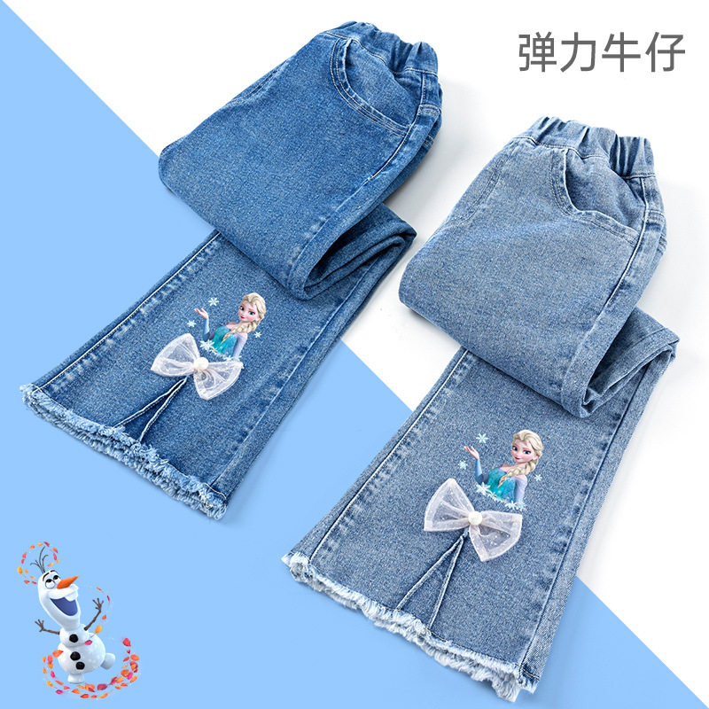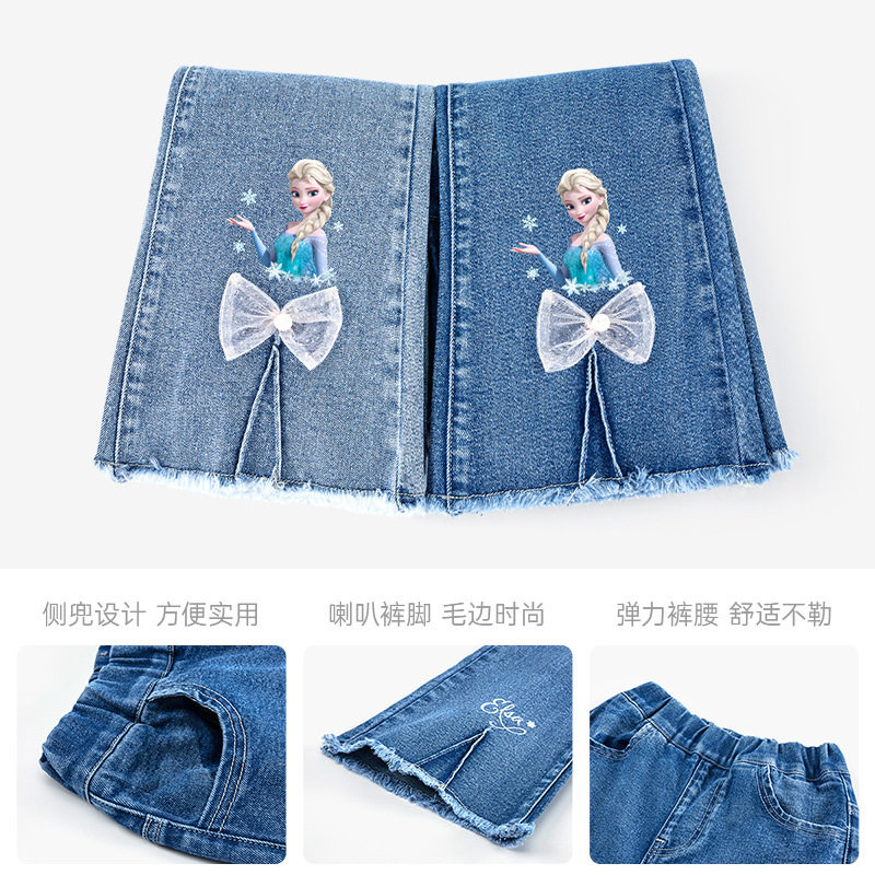 迪士尼女童冰雪奇缘艾莎公主喇叭裤儿童牛仔棉裤2025秋冬季新款