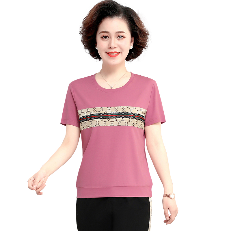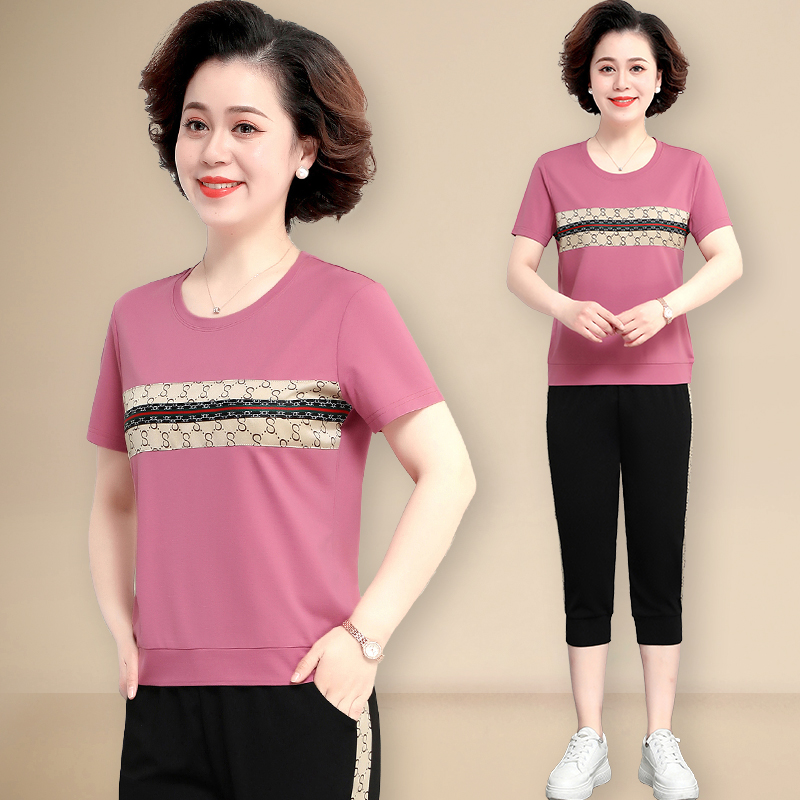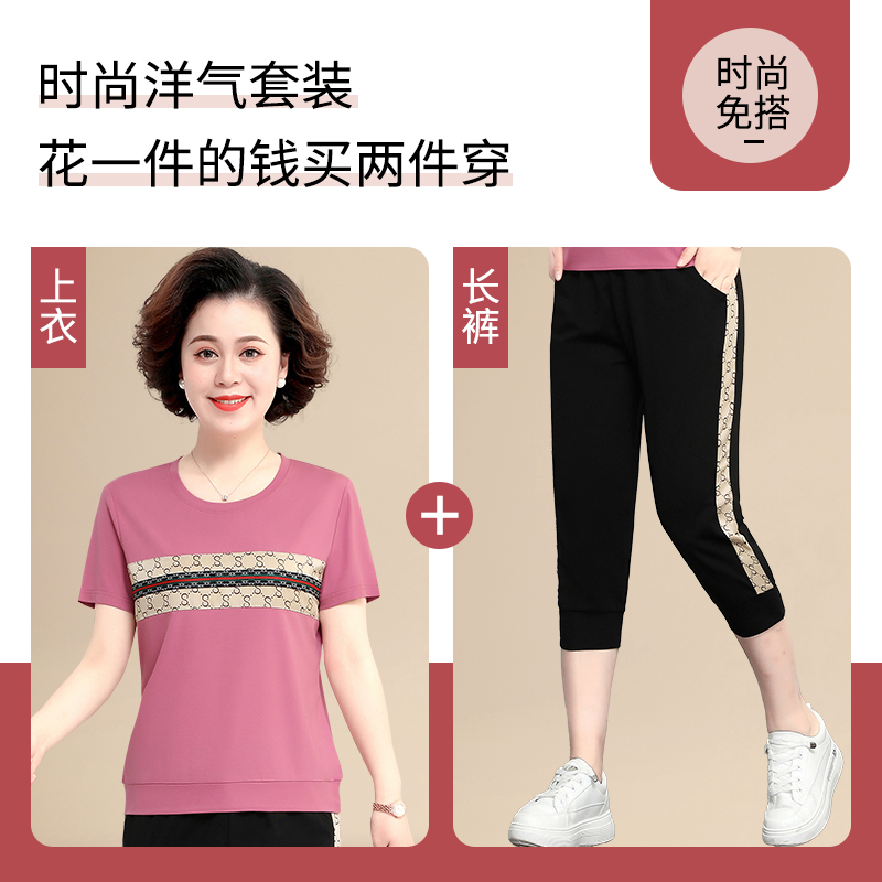 中年妈妈夏装短袖t恤中老年运动套装女上衣洋气减龄七分裤两件套