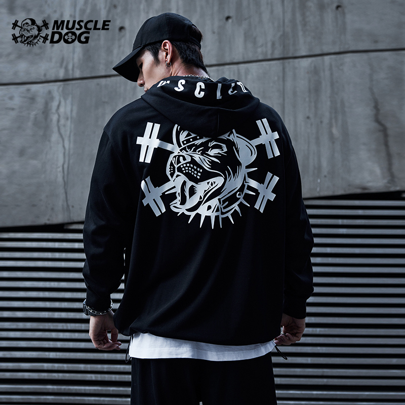 肌肉狗潮牌运动休闲透气连帽卫衣