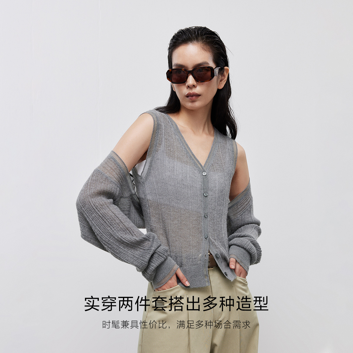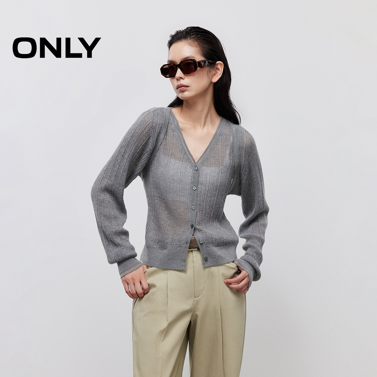 o区绫致ONLY2025秋冬新款空气感镂空织法套装V领长袖针织衫女