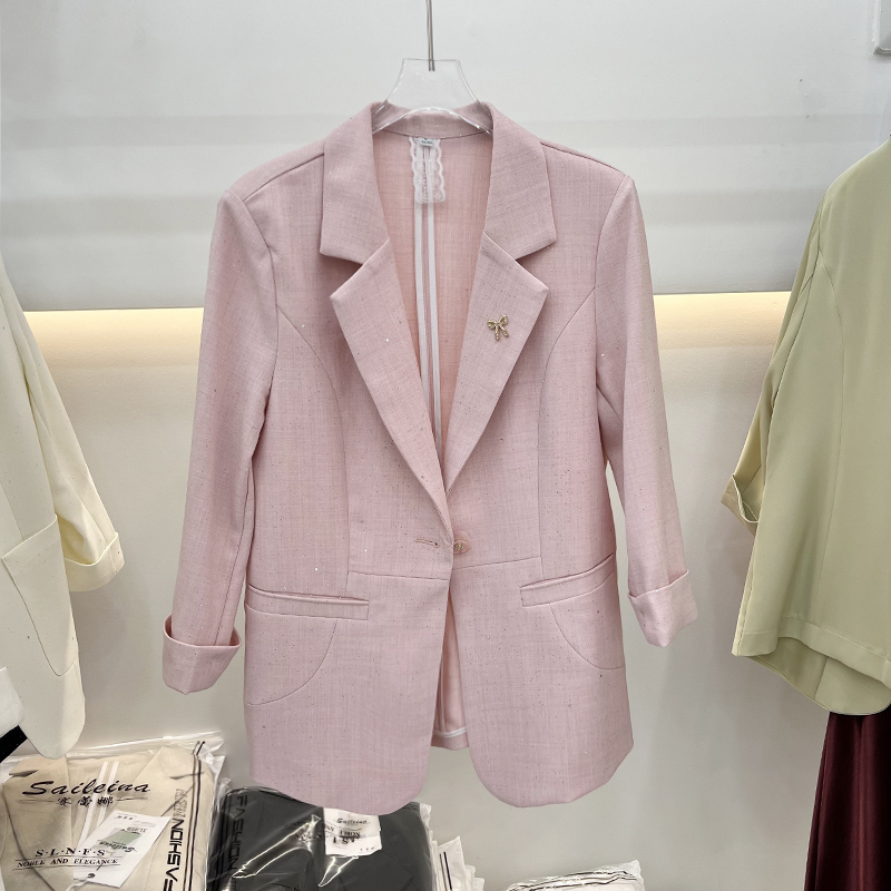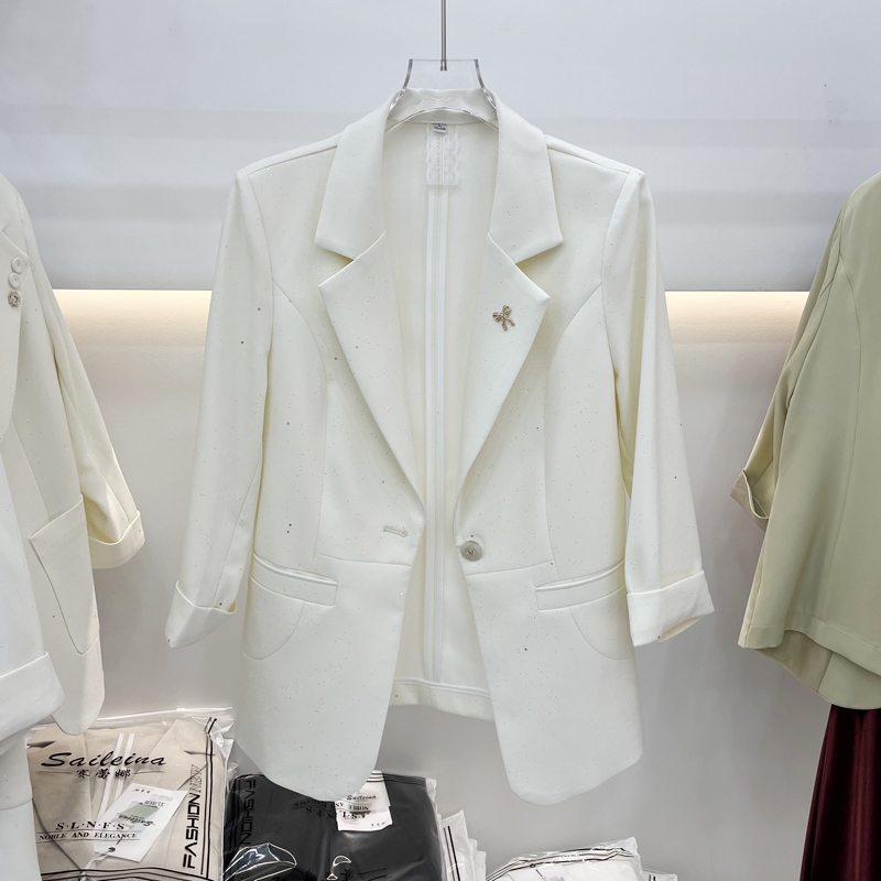 时尚亮片西装外套女夏季修身七分袖小西服2025新款气质显瘦上衣