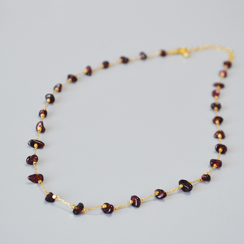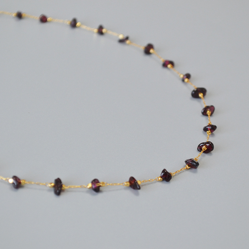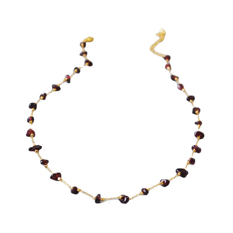 法式柔美气质手工组装链条不规则紫红色石榴石简约设计锁骨链项链