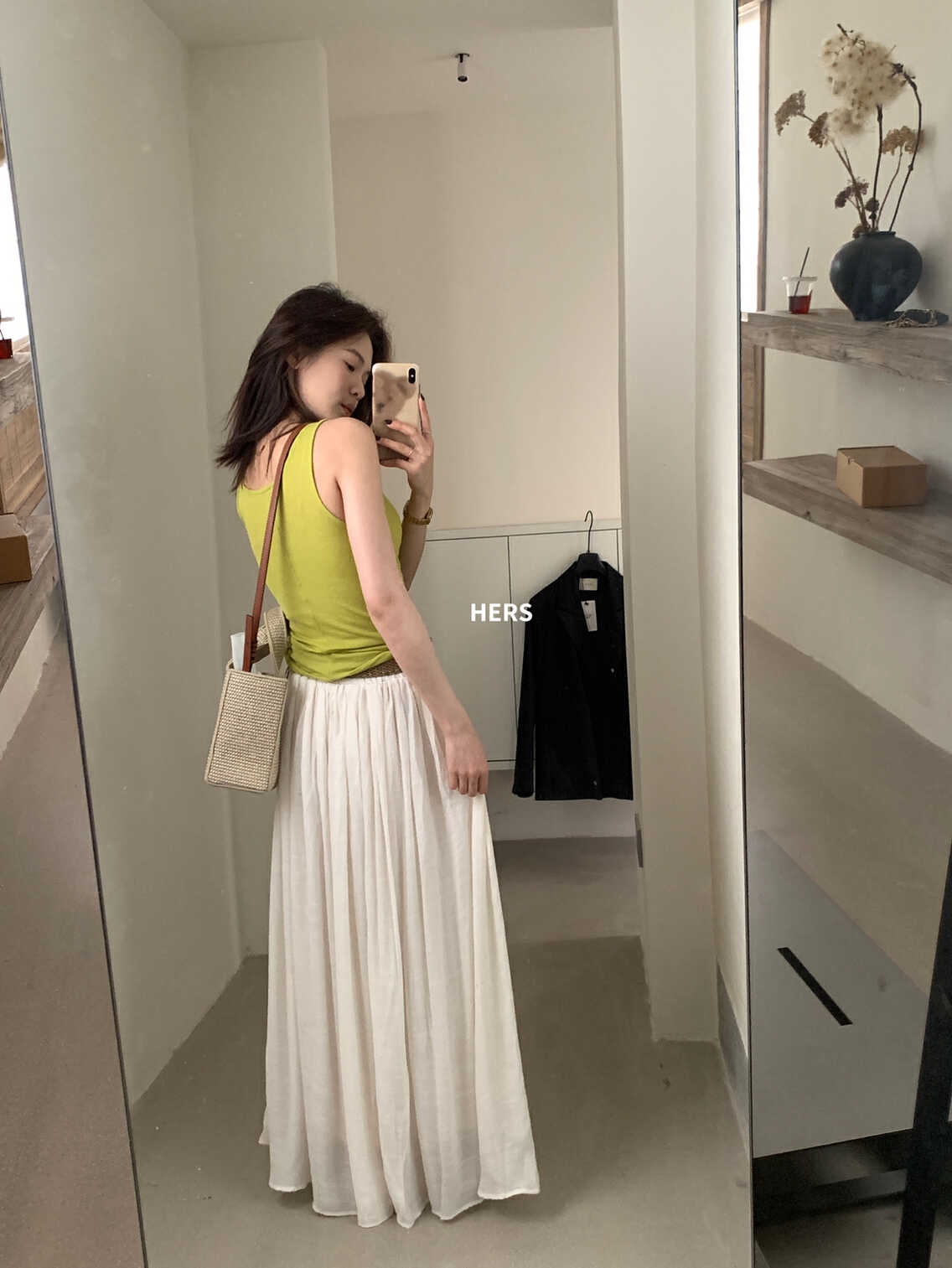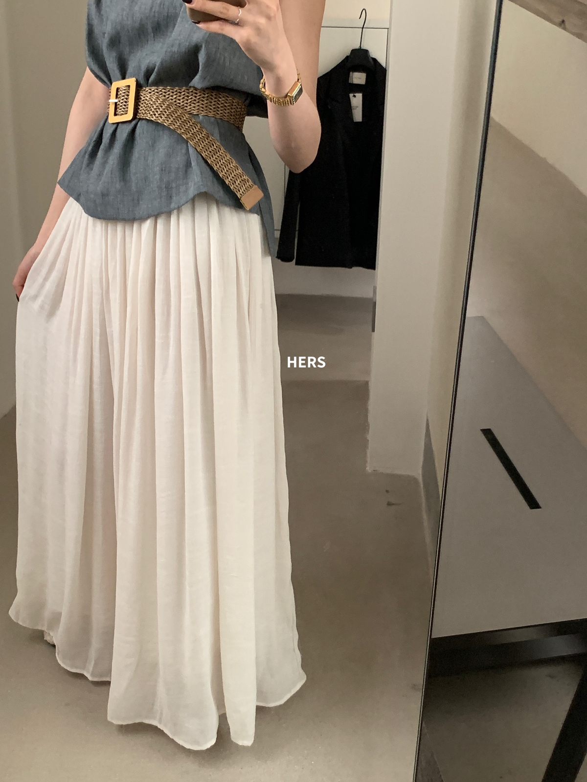 METWO hers慵懒度假感A摆半身裙女(配腰带)夏季新款半裙20740
