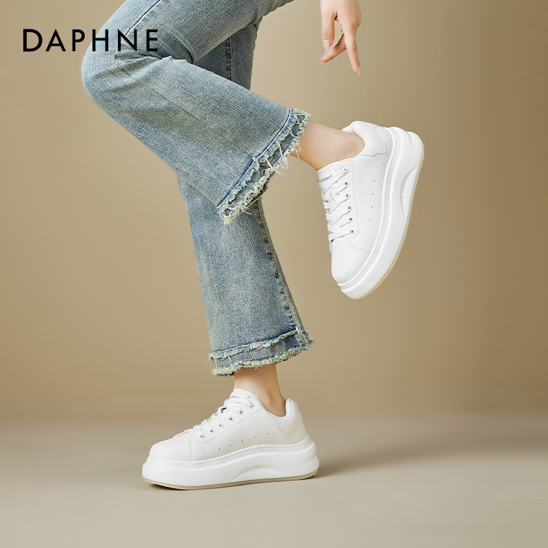 达芙妮厚底小白鞋女2025新款鞋子女鞋百搭学生配裙子增高面包板鞋