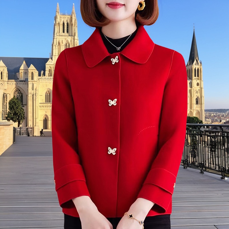 高端双面羊绒毛呢外套女2025中年妈妈春秋新款短款小个子羊毛大衣