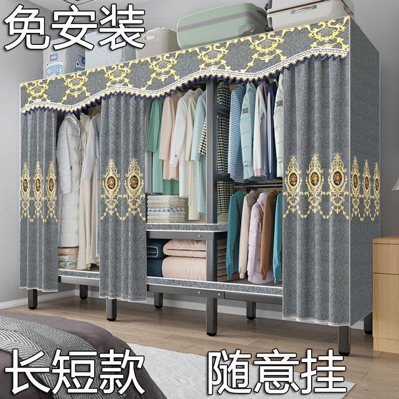 9WOR全挂折叠式衣柜免安装全钢架磁吸加深加厚家用卧室防尘轻奢挂