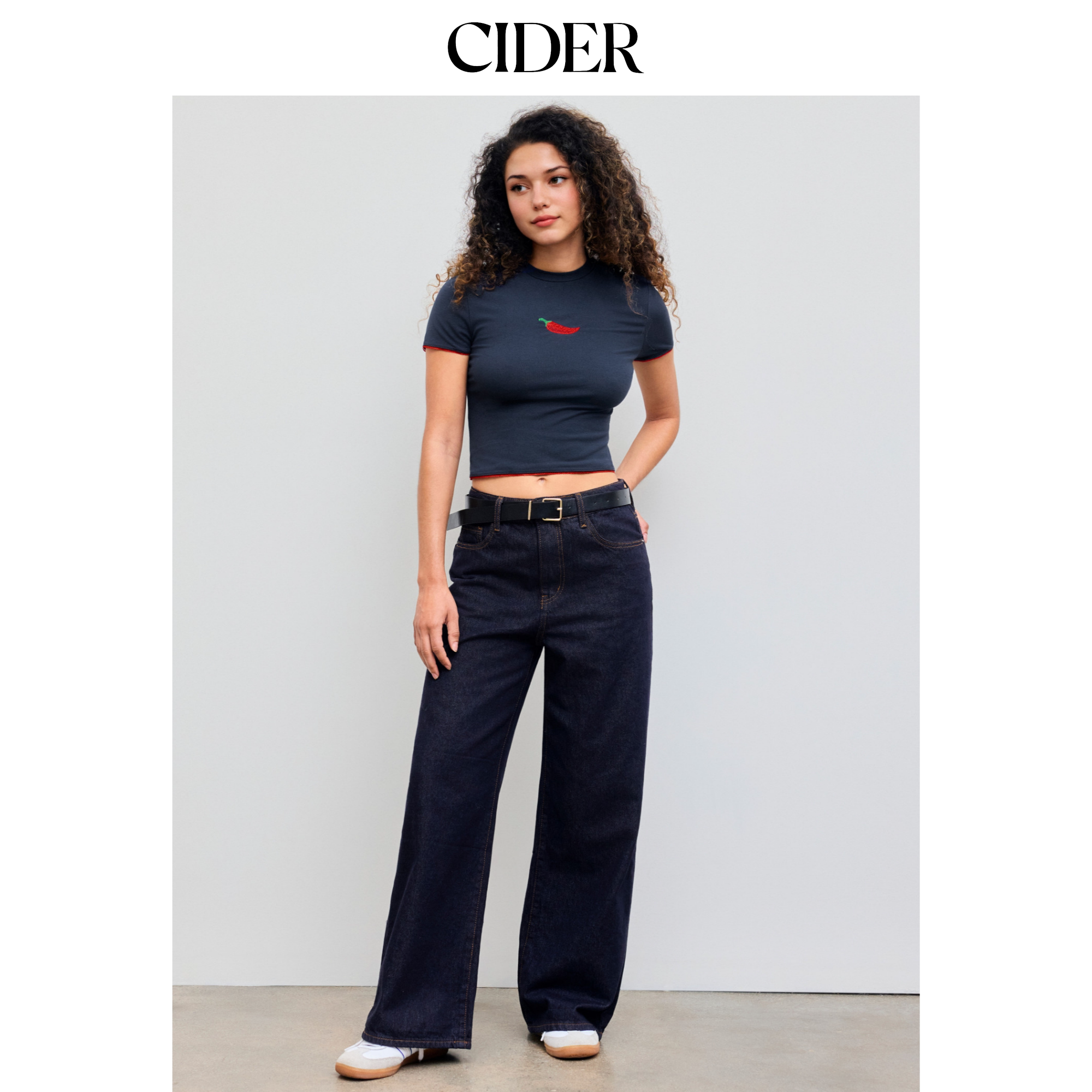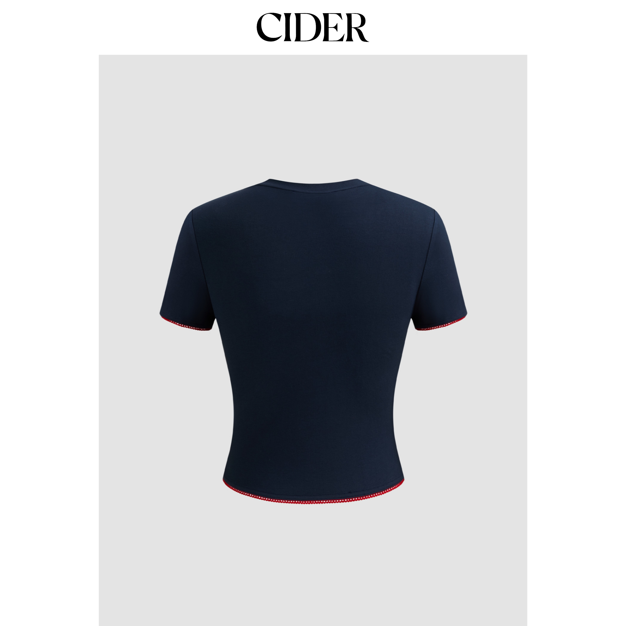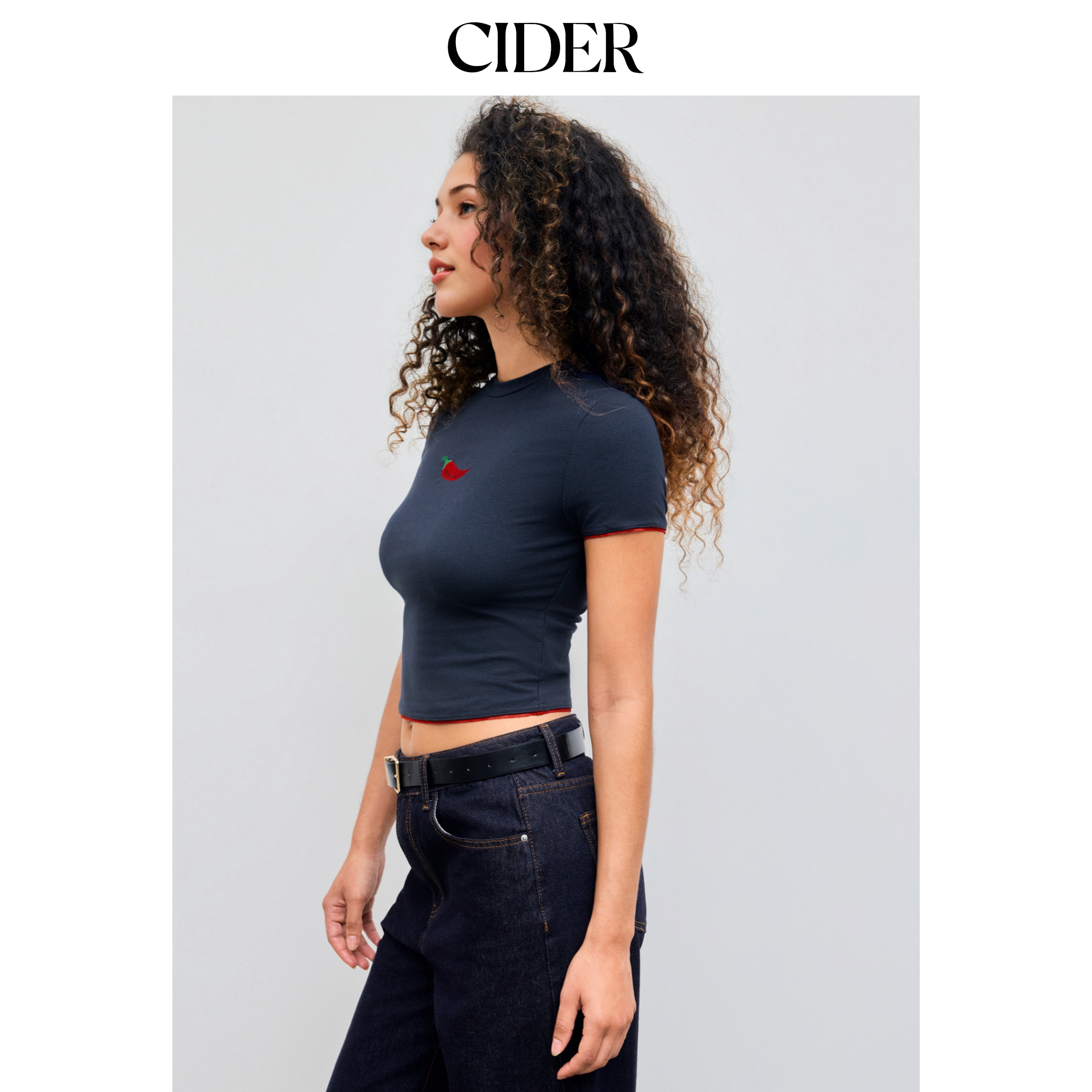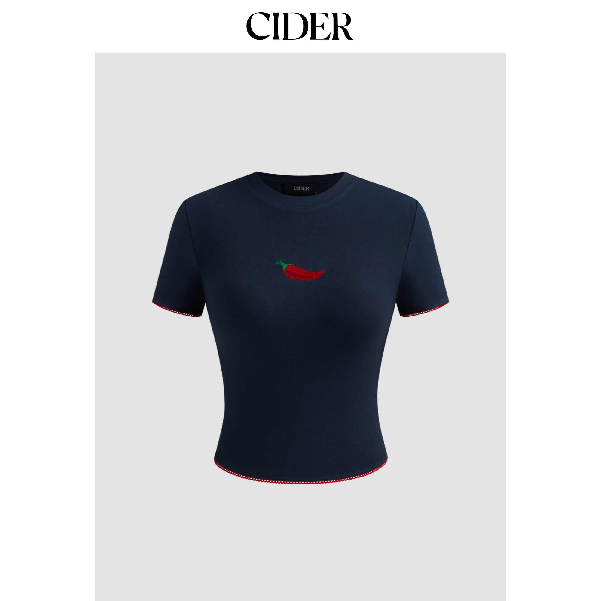 【明星同款】CIDER撞色镶边圆领百搭款辣椒T恤112417961